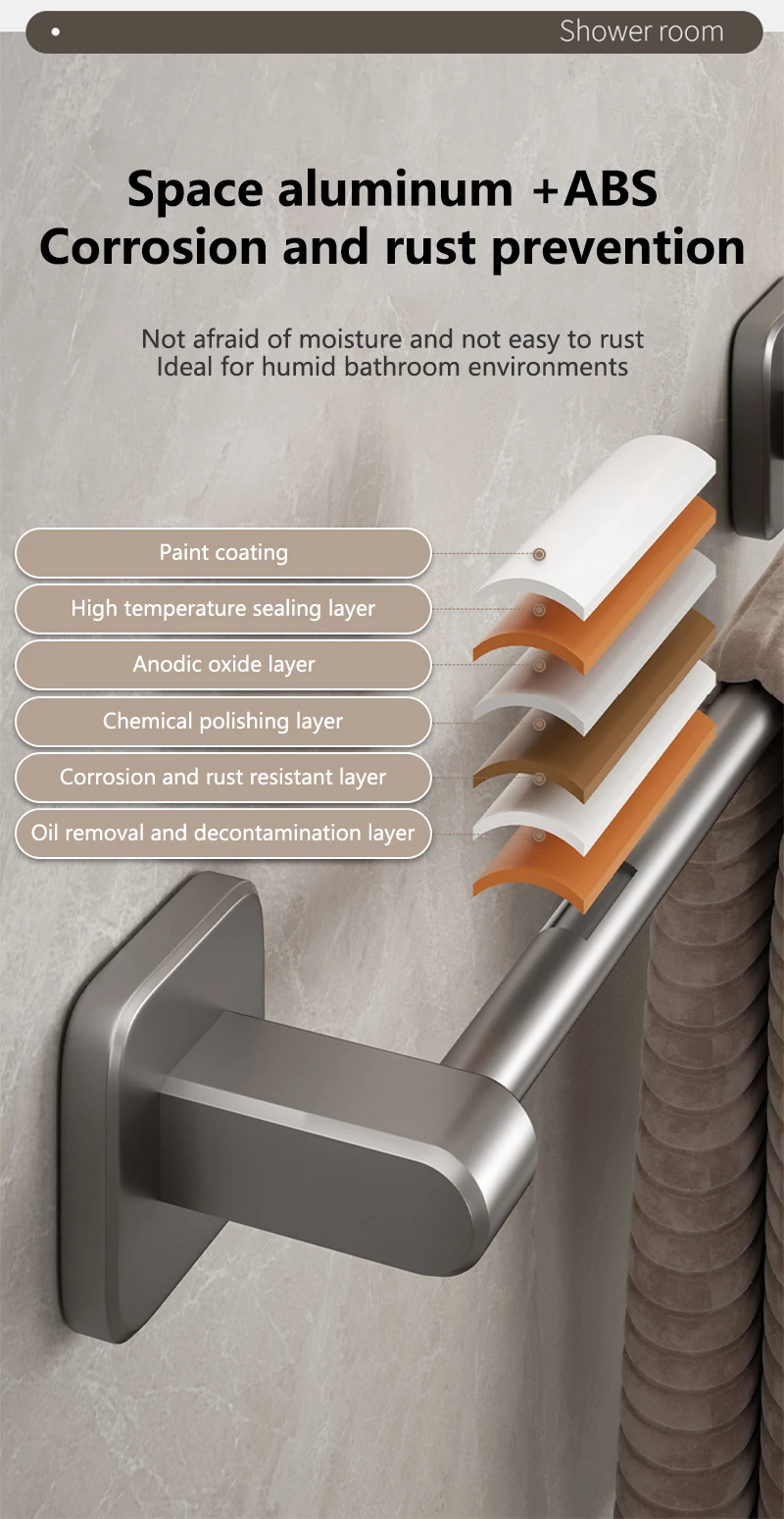 La tige de serviette est en aluminium spatial, pas en plastique!!!!Les têtes des deux côtés du porte-serviettes sont en plastique épais ABS.
