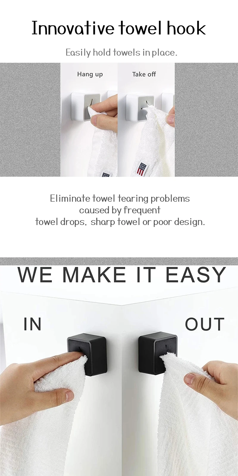 Crochet à serviette innovant : il est facile de fixer la serviette en place et élimine en même temps le problème de déchirure des serviettes causée par une chute fréquente des serviettes et des serviettes pointues ou mal conçues.
