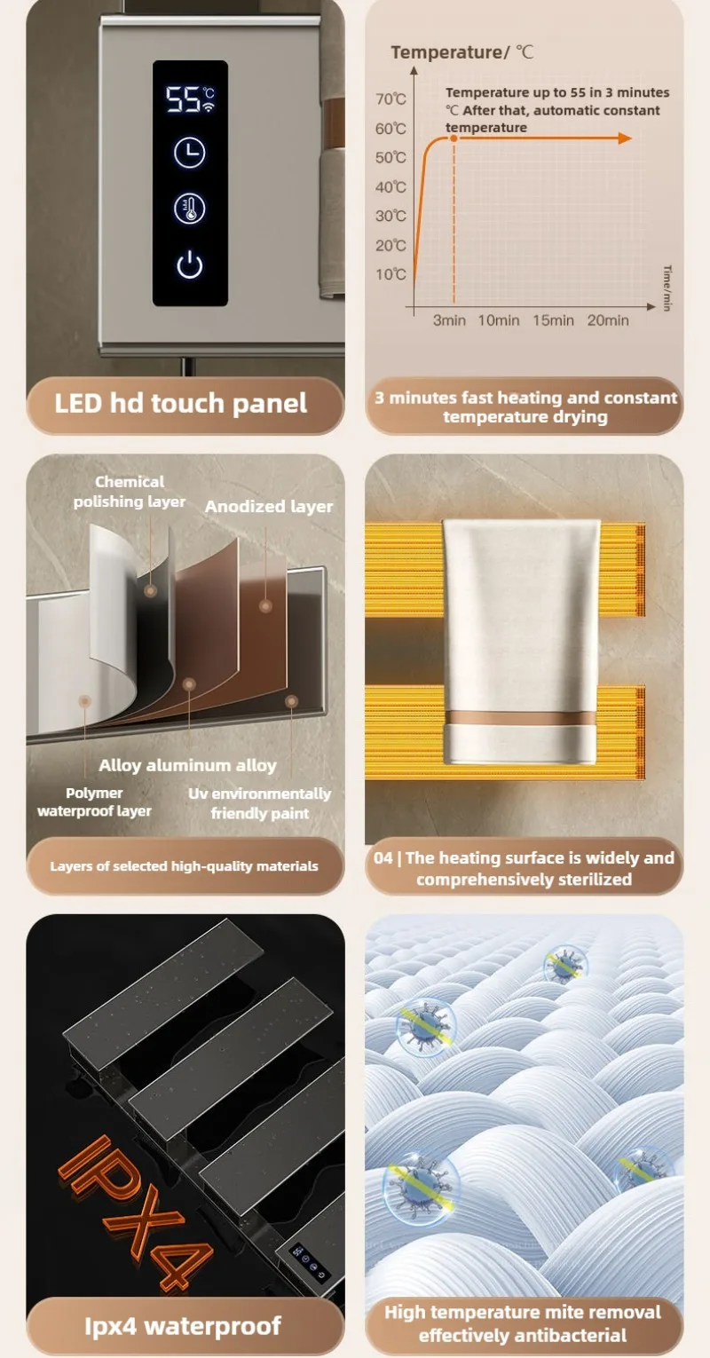 Porte-serviettes de salle de bain, radiateur mural, porte-serviettes multicouche, chauffage Intelligent à température constante, barres chauffantes