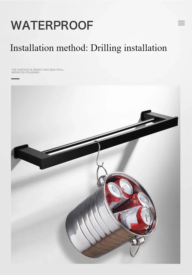 Porte-serviettes de salle de bain, support suspendu simple en alliage d’aluminium noir