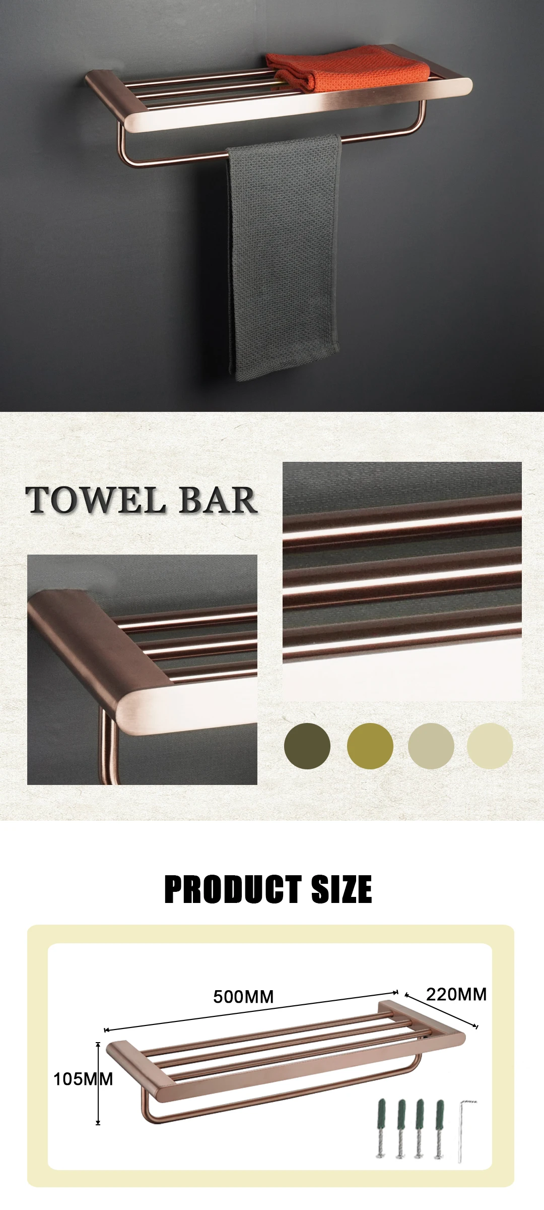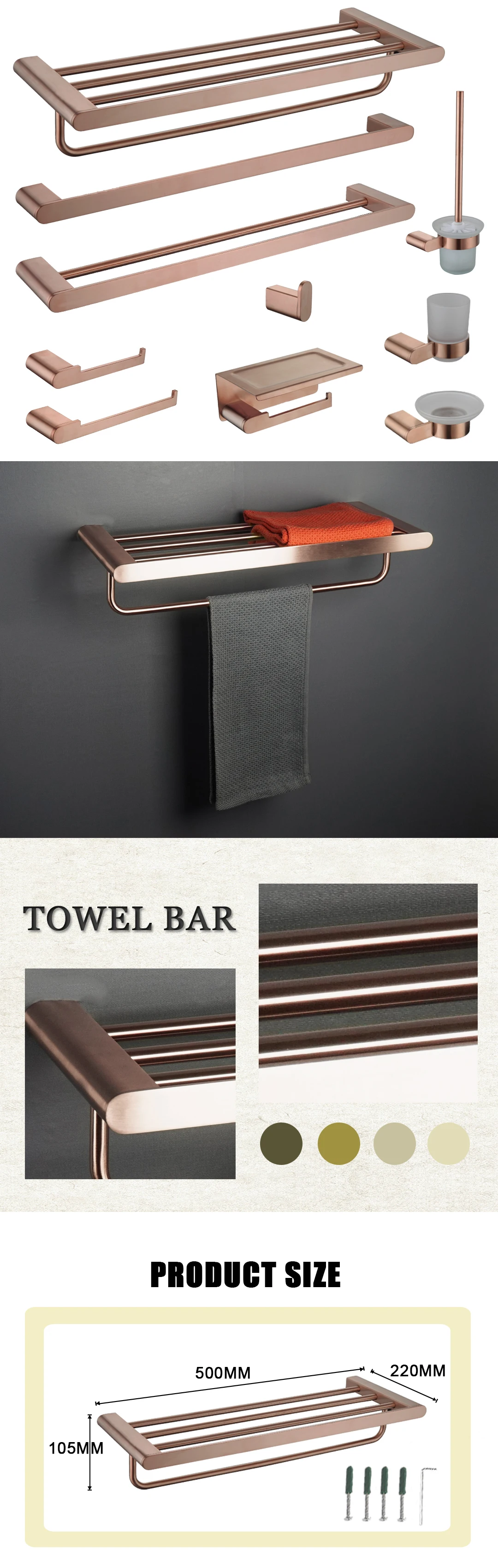 Porte-serviettes en or Rose brossé/crochet à vêtements/porte-gobelet/porte-savon/brosse de toilette/porte-serviettes en papier accessoires de quincaillerie de salle de bains