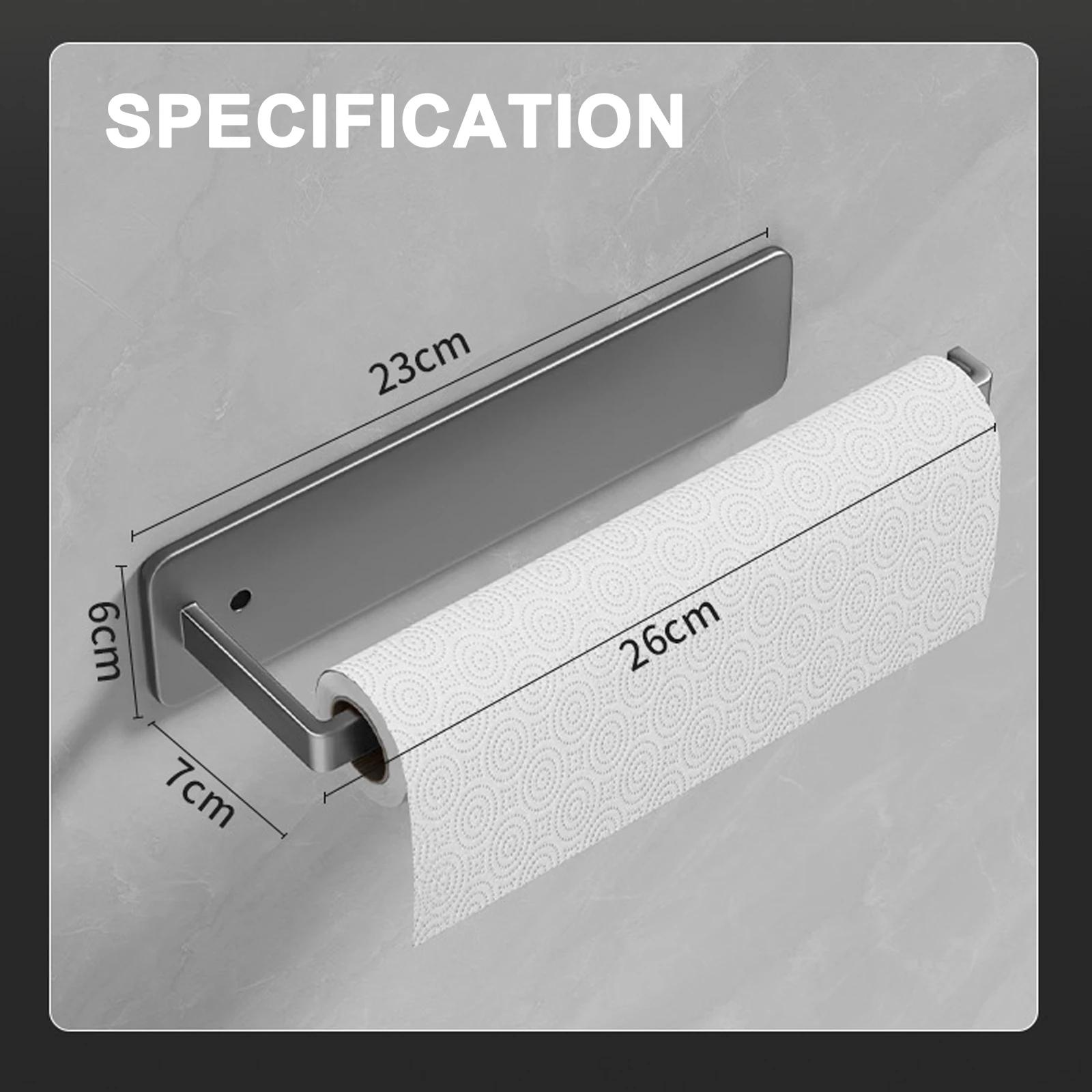 Porte-serviettes en papier auto-adhésif, porte-rouleau de papier toilette, sans poinçonnage, cuisine salle de bains, support de rangement allongé, gris noir blancPorte-serviettes en papier auto-adhésif, porte-rouleau de papier toilette, sans poinçonnage, cuisine salle de bains, support de rangement allongé, gris noir blanc