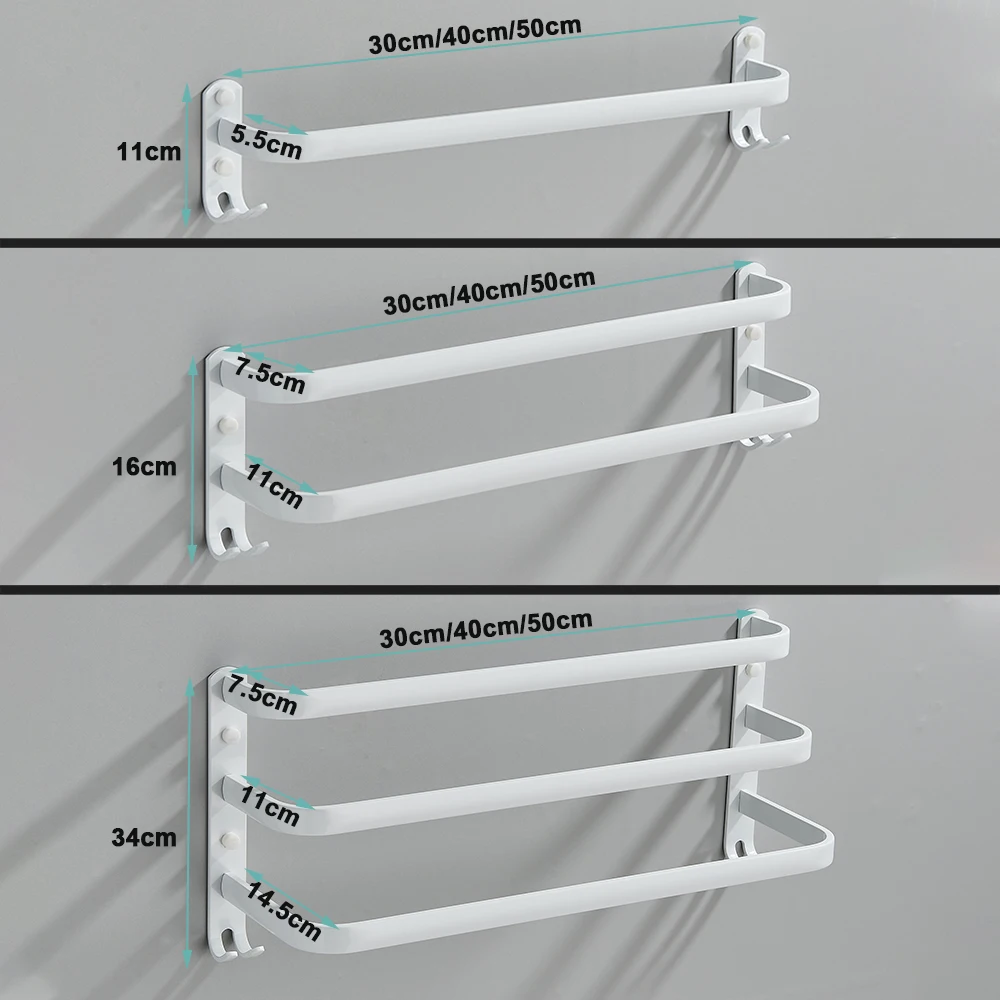 Porte-serviettes mural en aluminium blanc T1 HOSpace, porte-serviettes, porte-serviettes, rail, sans perceuse, modePorte-serviettes mural en aluminium blanc T1 HOSpace, porte-serviettes, porte-serviettes, rail, sans perceuse, mode