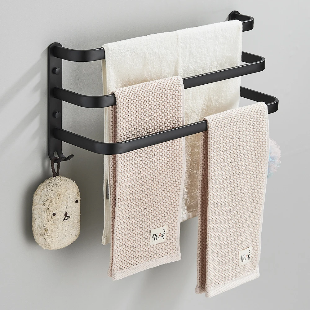 "Ce porte-serviettes mural est vraiment top ! L'installation a ete super facile, sans avoir besoin de percer. J'apprécie beaucoup le design épuré et moderne, qui s'intègre parfaitement dans ma salle de bain. La qualité de fabrication est excellente, et il tient très bien les serviettes. Le seul petit point négatif est que les vis fournies sont un peu trop courtes à mon goût, mais rien de bien grave. Dans l'ensemble, je suis très satisfait de cet achat et je le recommande sans hésiter !"