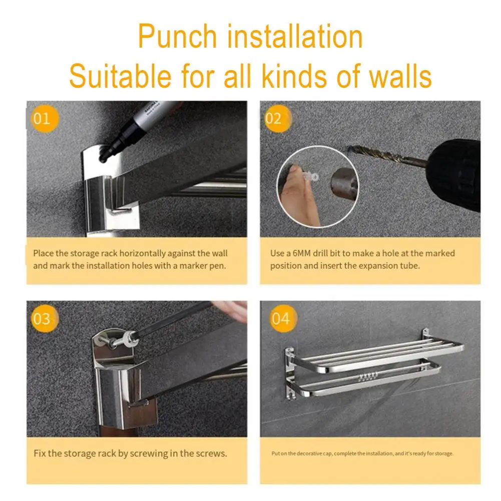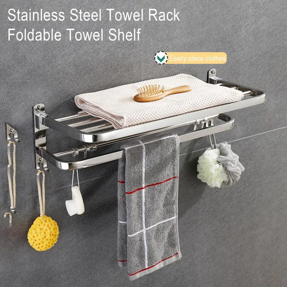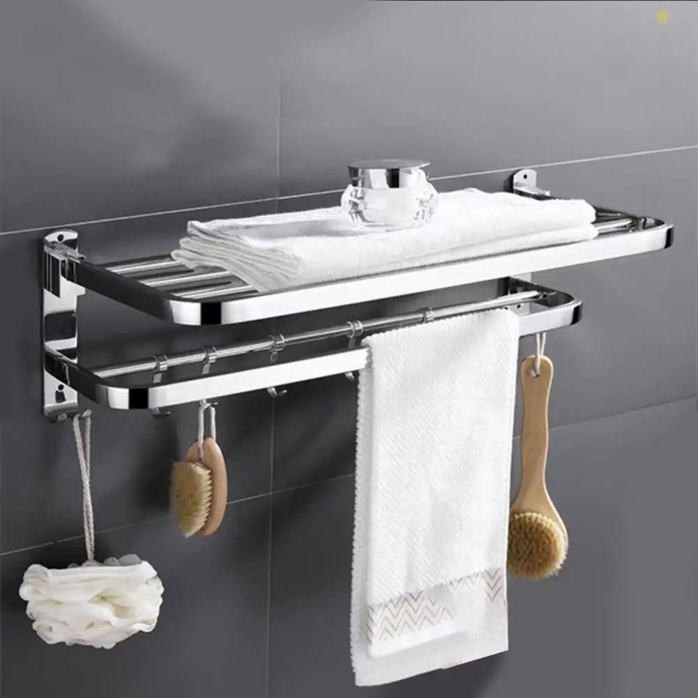 Durabilité en acier inoxydable de qualité supérieure : fabriqué en acier inoxydable de haute qualité, notre étagère à serviettes pliable est construite pour résister aux environnements humides sans rouiller, décoller ou à gratter. Profitez d’une surface lisse et durable qui est facile à nettoyer, garantissant une utilisation durable pour votre commodité.