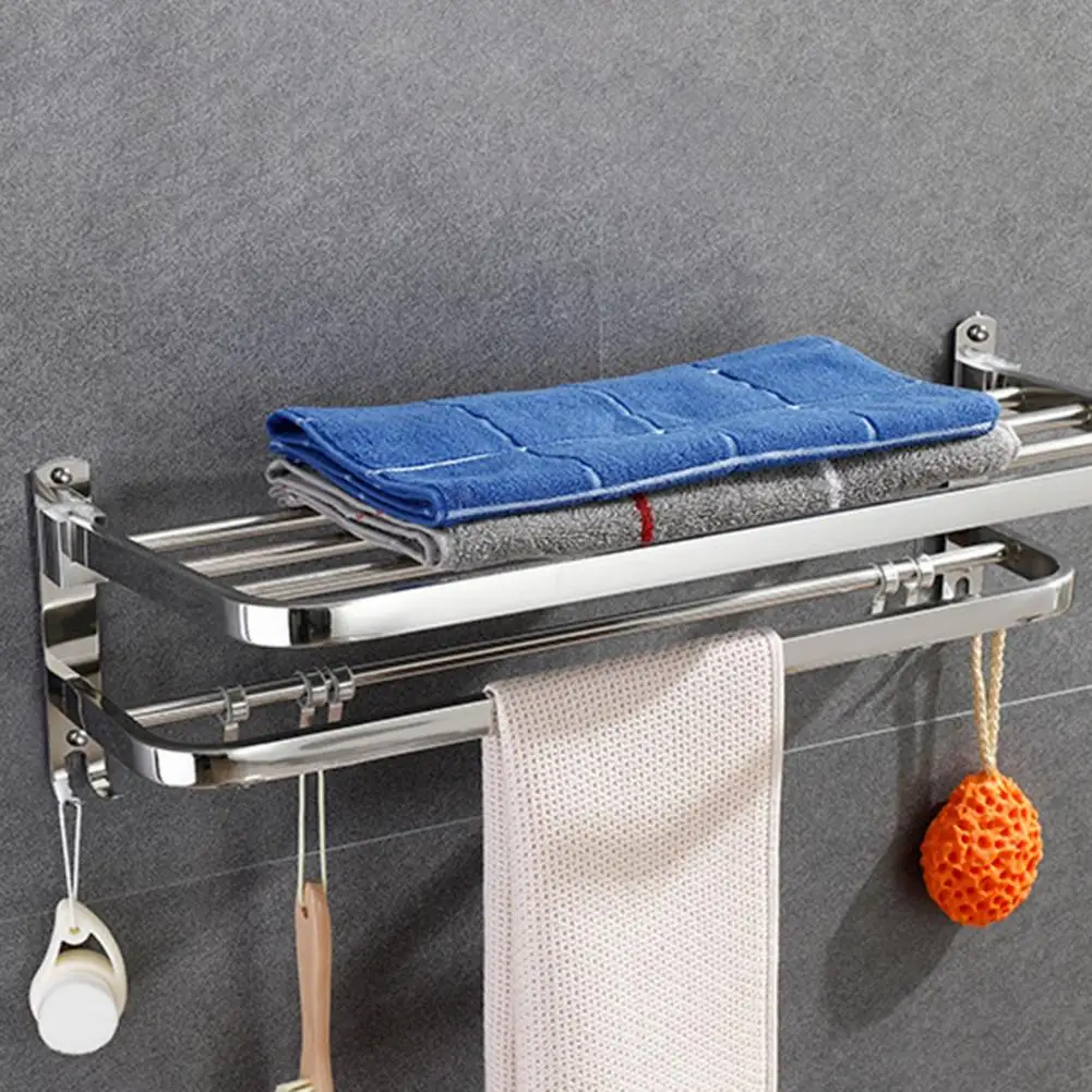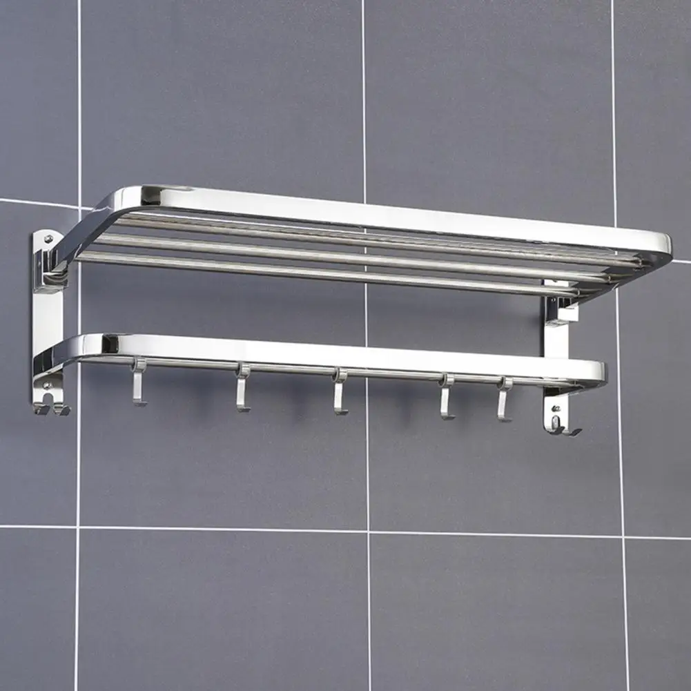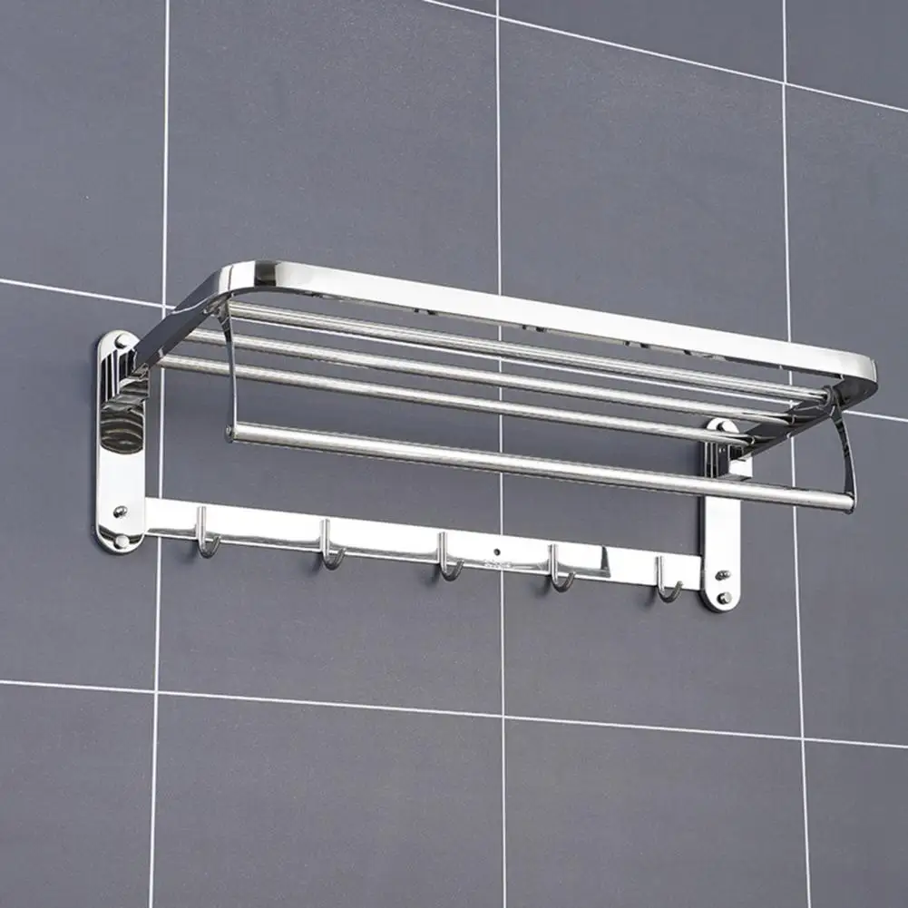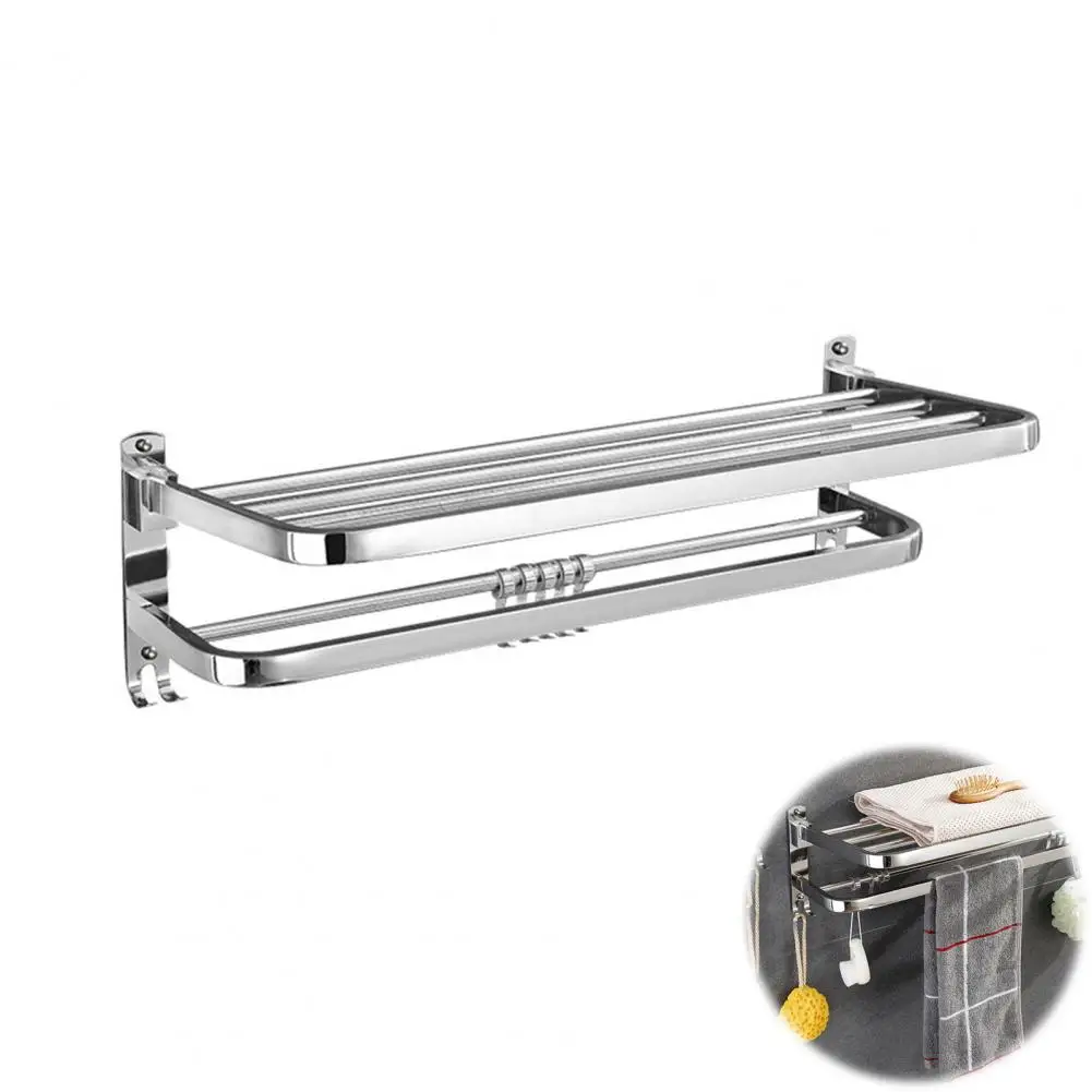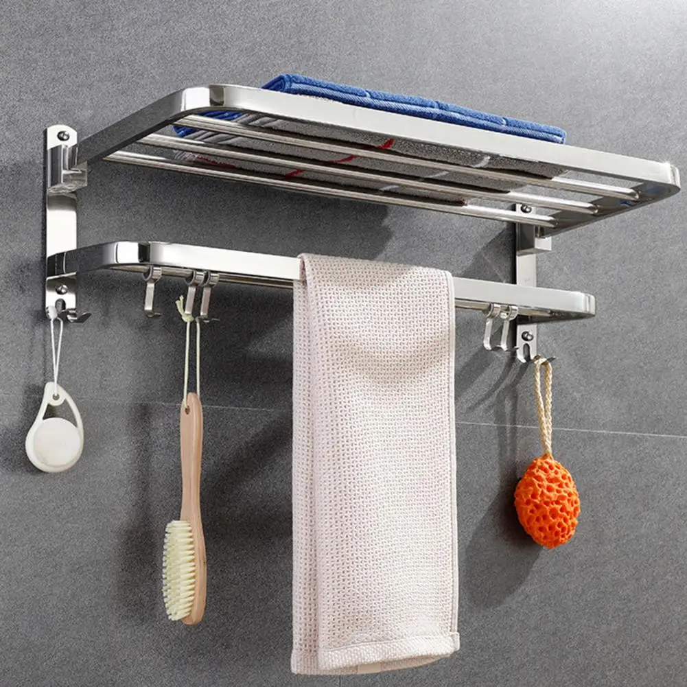 Porte-serviettes pliable avec crochets mobiles, organisateur de rangement mural antirouille pour salle de bain