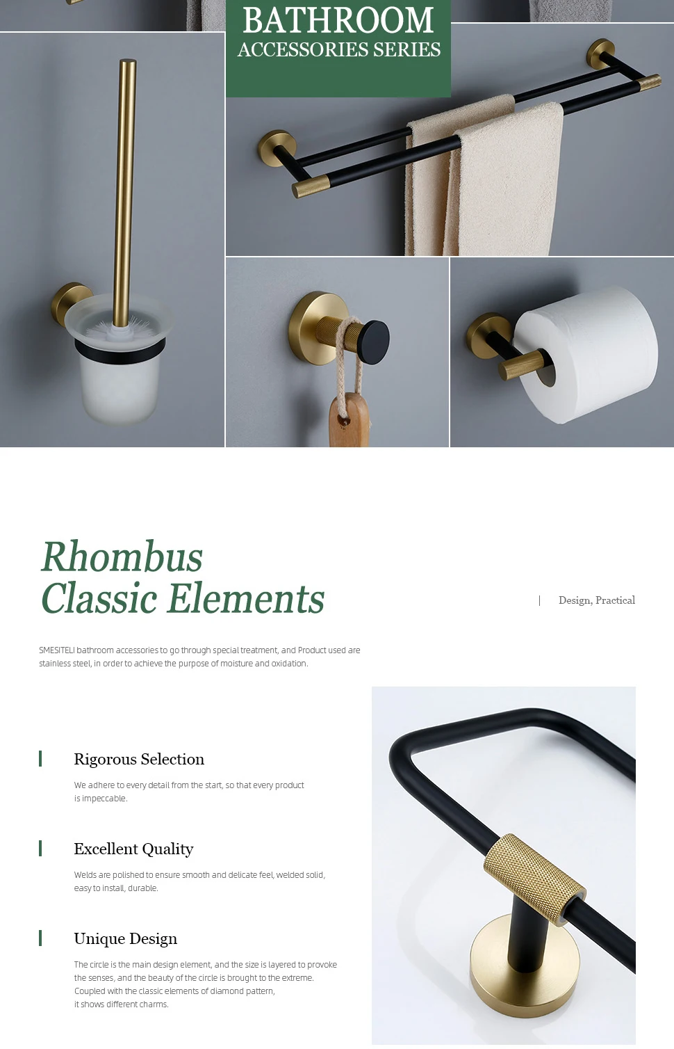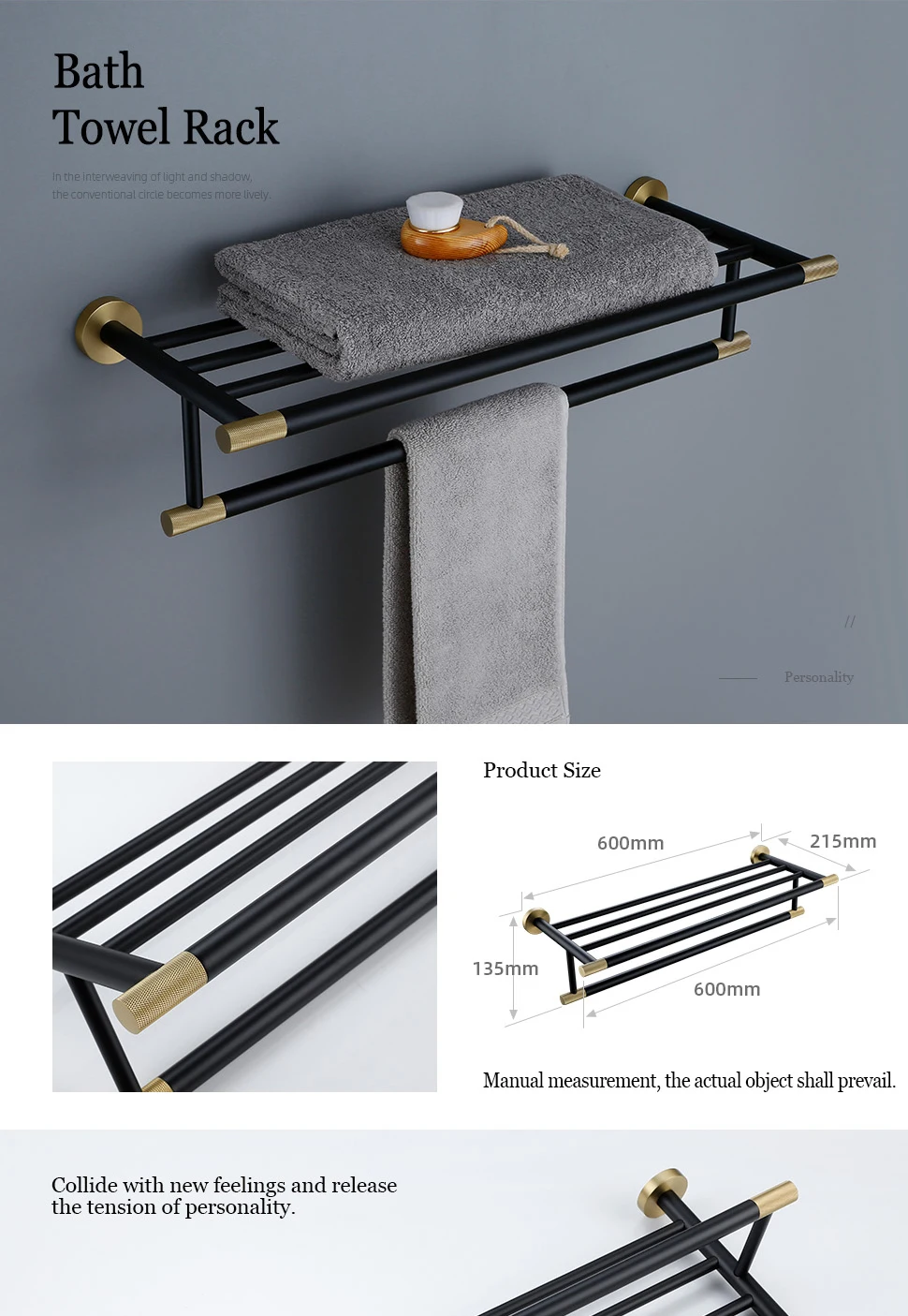 • Design: Knurled and Combined Colors(Matte Black+Brushed Gold)