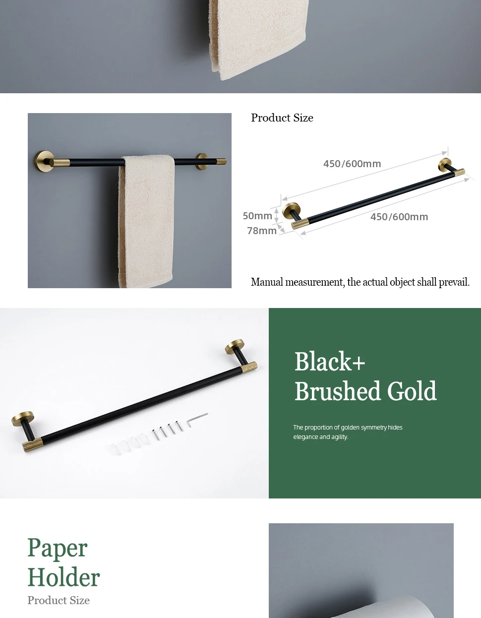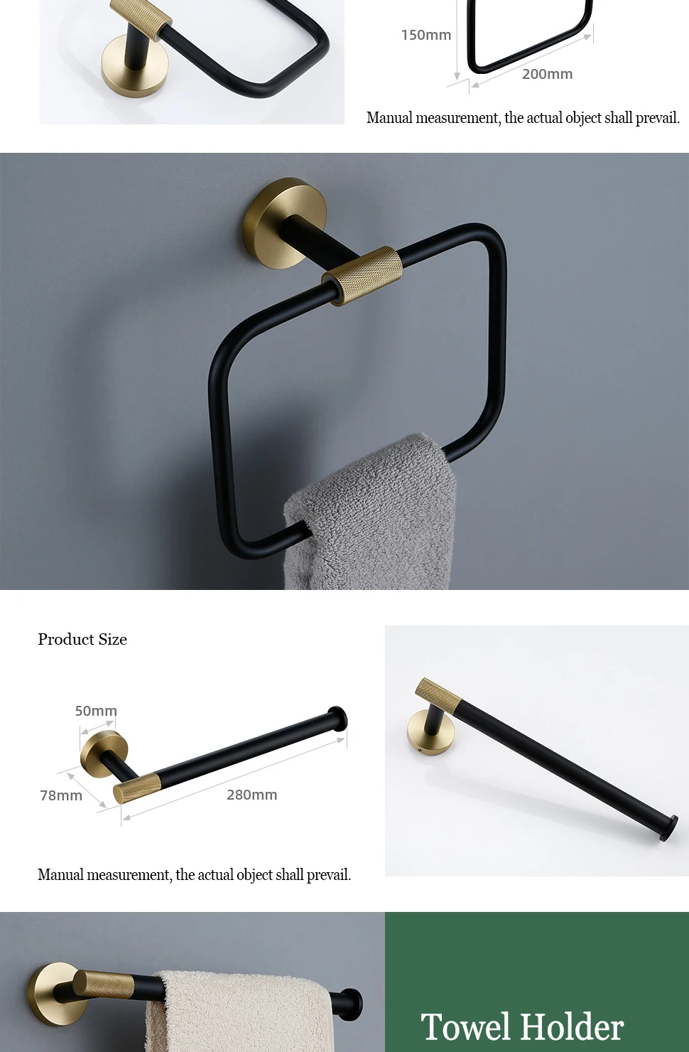 Porte-serviettes mural porte-serviettes or brossé porte-papier et crochet noir mat couleurs moletées et combinées porte-brosse de toilettePorte-serviettes mural porte-serviettes or brossé porte-papier et crochet noir mat couleurs moletées et combinées porte-brosse de toilette
