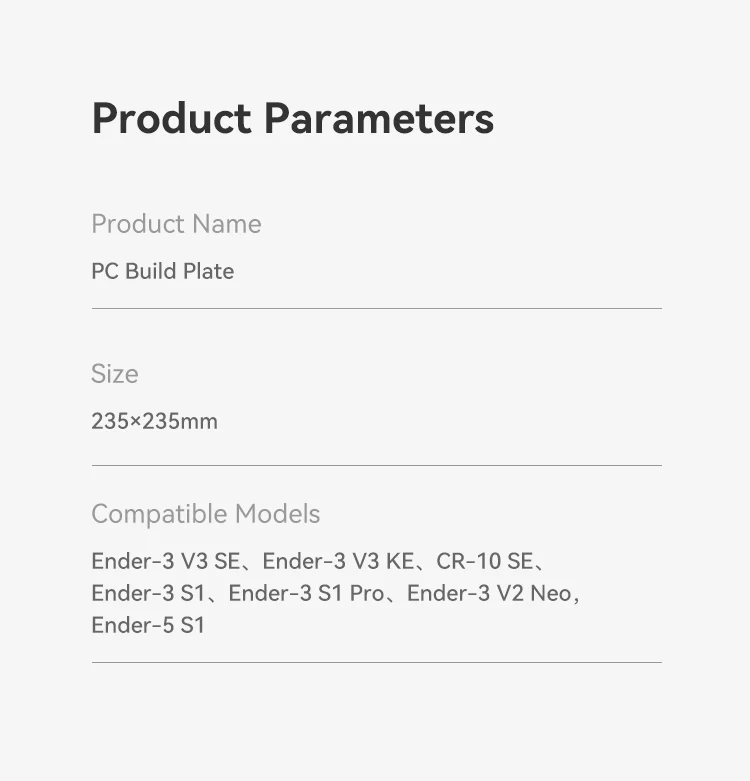 Creality Ender-3 V3 SE/KE plaque de construction texturée PC 235x235mm carte de plate-forme d’imprimante 3D simple face accessoires d’imprimante 3D