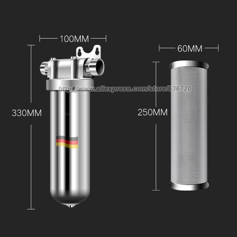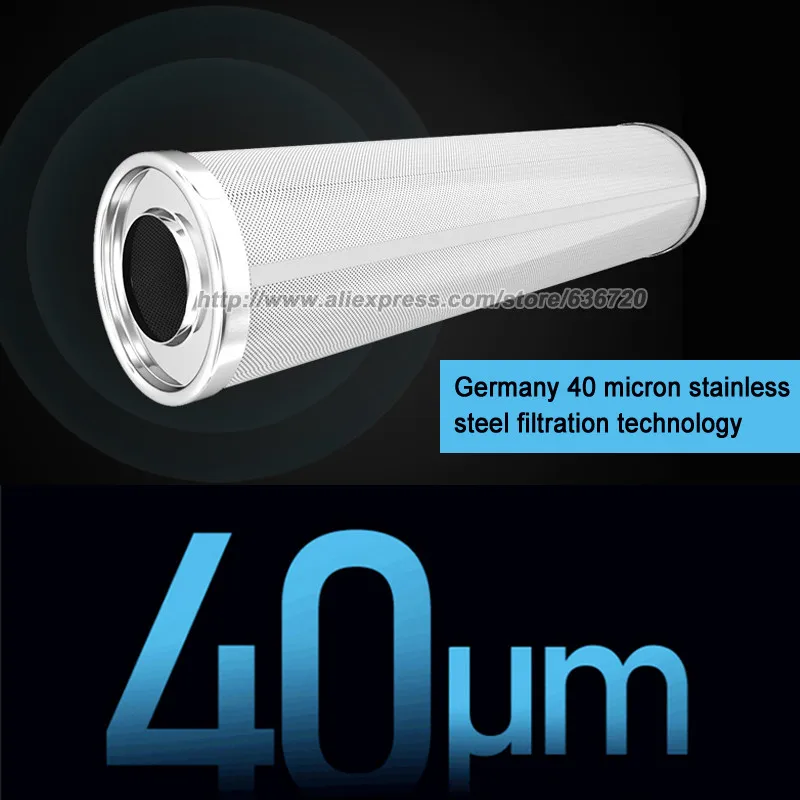 La maille de filtre de 40 microns est faite d’acier inoxydable du SUS 316L, et la tête du corps principal est faite de laiton sans plomb, et la durée de vie est plus que plusieurs années. Le boîtier transparent de qualité alimentaire fabriqué en Allemagne ne contient pas de BPA et a passé avec succès le test de coup de bélier de 150,000 cycles et le test de pression le plus élevé de 1000 psi.