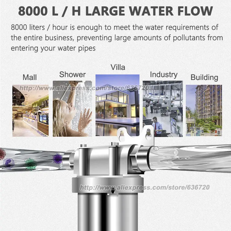 1. pré le filtre à eau, la porte de protection du canal de l’eau entier total de maison, empêchent la chose de grain entrant dans des conduites d’eau de maison, telles que le sédiment et la rouille etc…. Protégez l’appareil ménager à la vie plus longue.