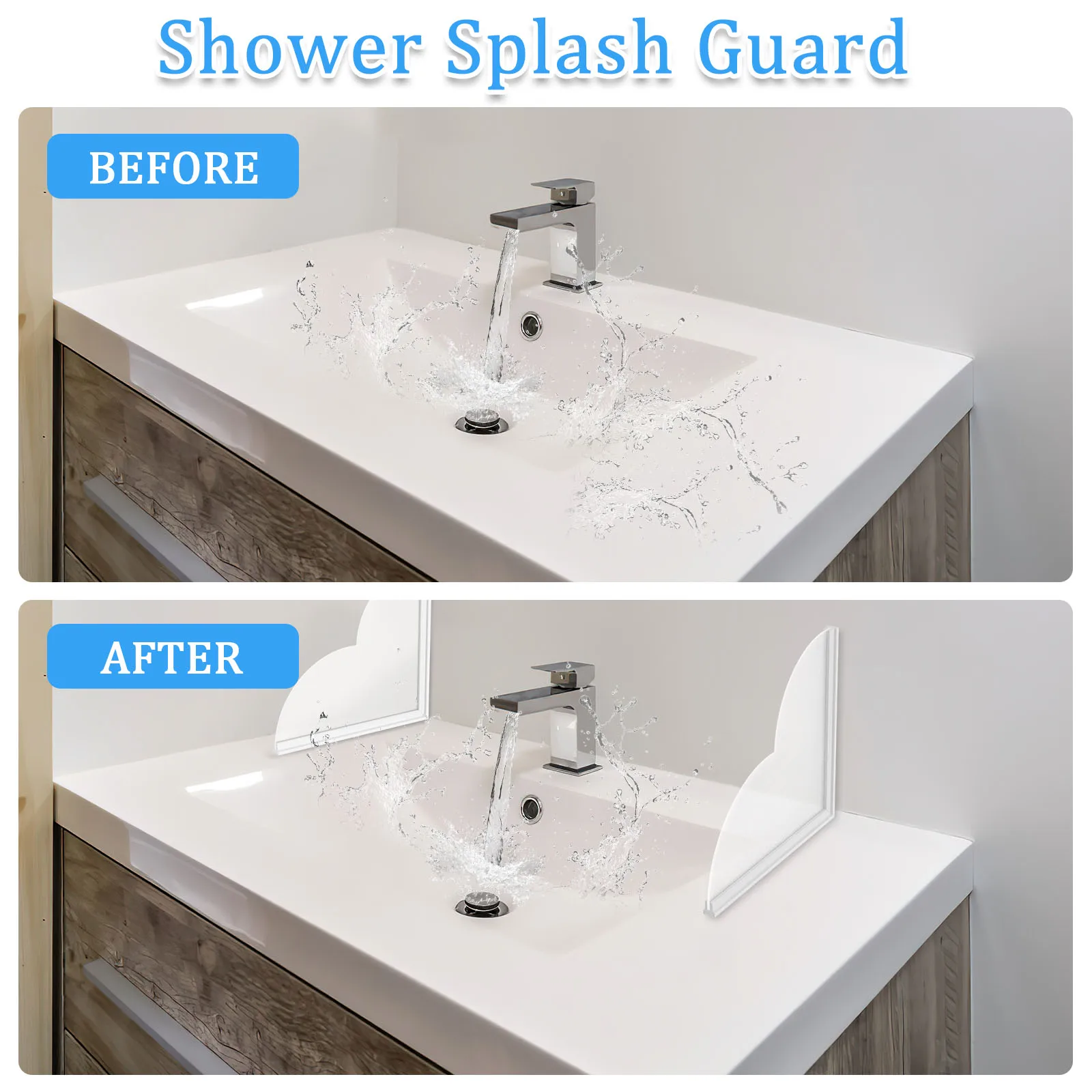 [Matériau de qualité] Ce garde-eau de douche est en panneau acrylique givré incurvé de haute qualité et base en silicone blanc, la base en silicone peut être fendrée pour s’adapter aux coins non-angle droit, l’effet visuel givré translucide ajoute un sens de la transparence au bain.