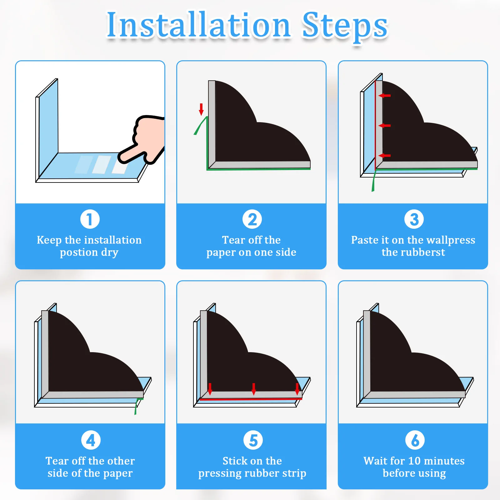 [Installation facile et adhésif puissant] Notre base en silicone pour protection contre l’eau de baignoire est livrée avec un adhésif puissant au dos, il suffit de décoller le ruban adhésif pour l’installer facilement, il ne laissera pas de traces adhésives après l’avoir arraché, si vous sentez que l’adhésif n’est pas assez solide, vous pouvez utiliser l’adhésif solide fourni avec l’emballage pour le renforcement.