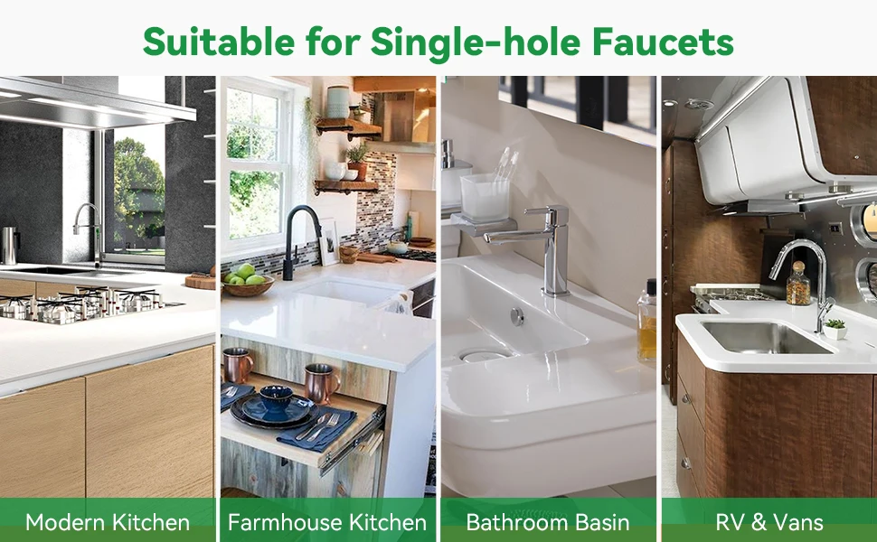 Scénarios d’utilisation : éviers, cuisines, salles de bains, comptoirs de bar et autres réglages.