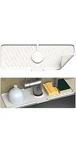 Protection contre les éclaboussures de robinet d’évier de cuisine, coussin de robinet d’évier plus long en silicone, salle de bain, ferme, bar, support éponge à savon beige pour la vaisselle.Protection contre les éclaboussures de robinet d’évier de cuisine, coussin de robinet d’évier plus long en silicone, salle de bain, ferme, bar, support éponge à savon beige pour la vaisselle.