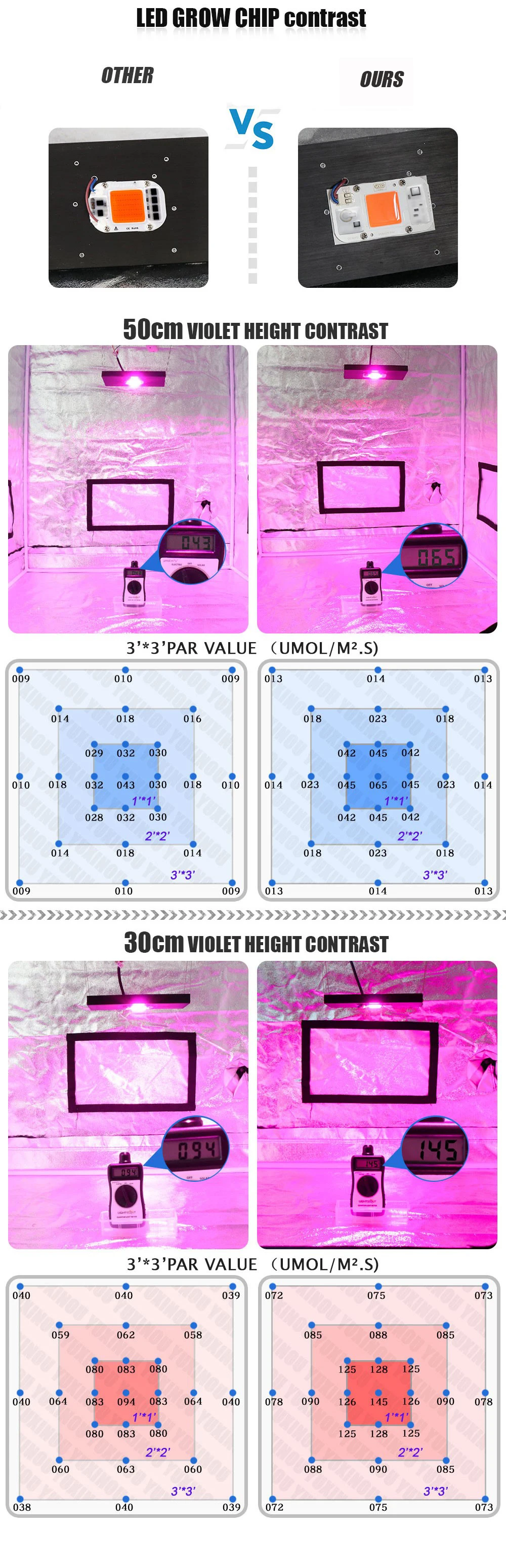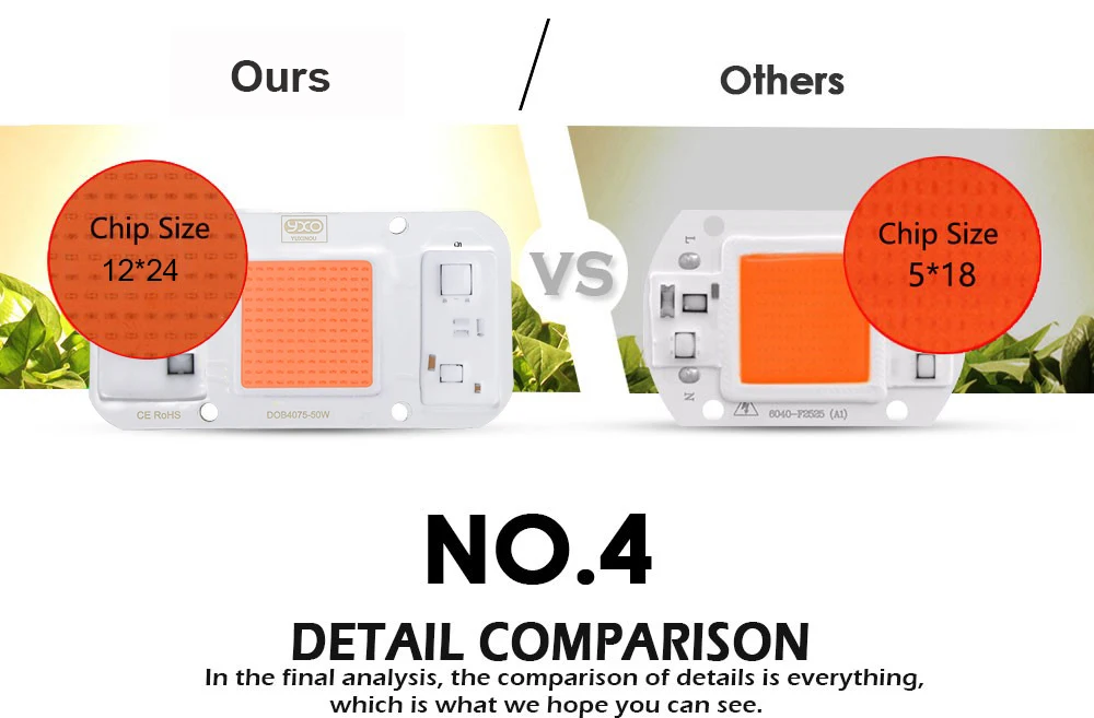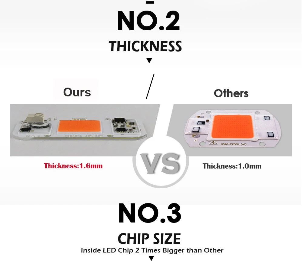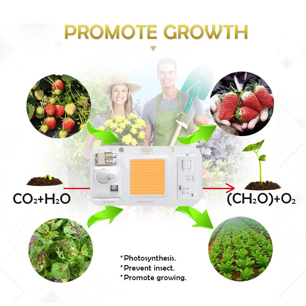 Hydroponice AC 220V 20w 30w 50w led puce de culture spectre complet 380nm-840nm pour la culture de plantes d’intérieur