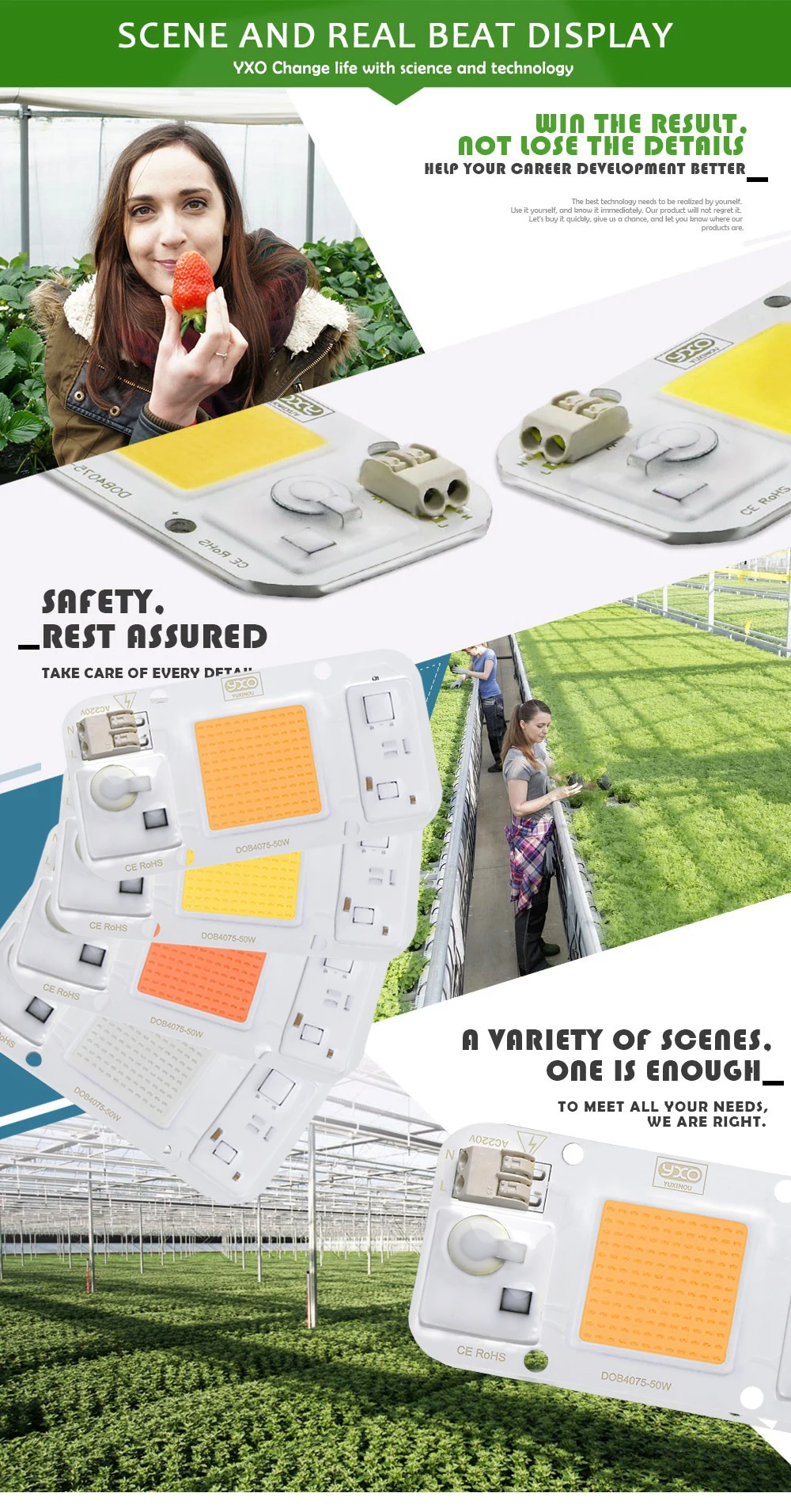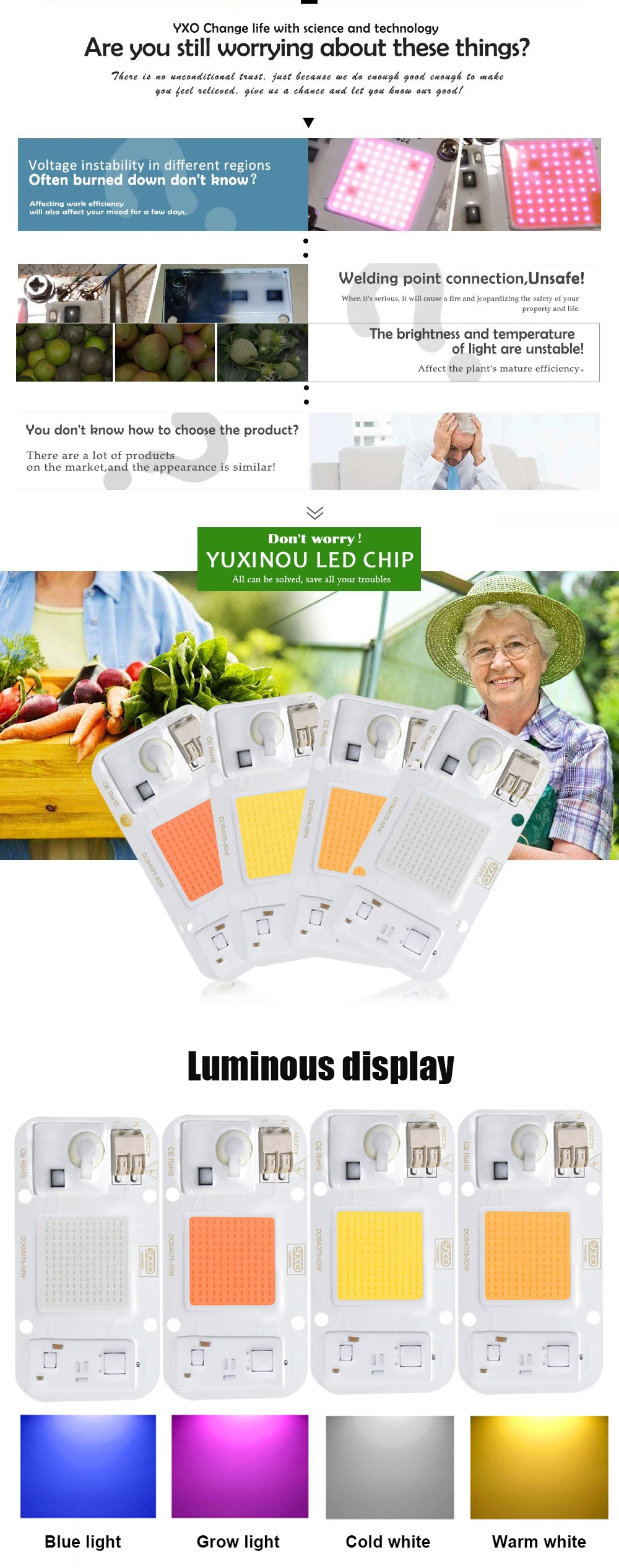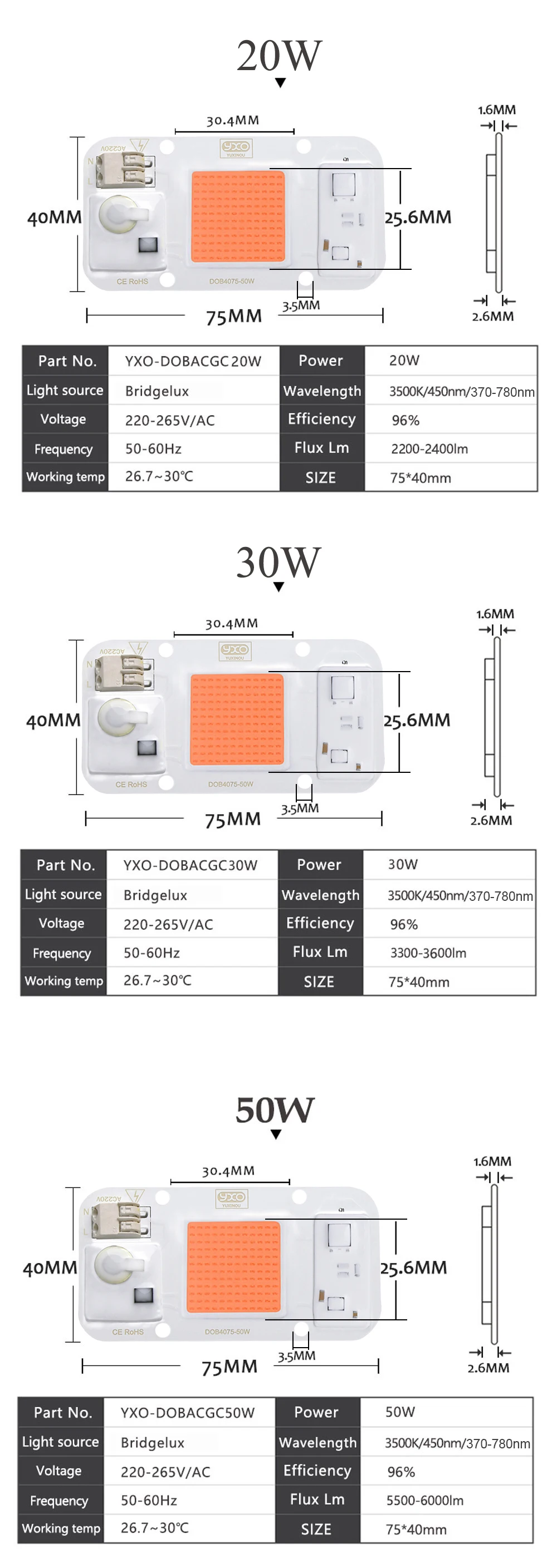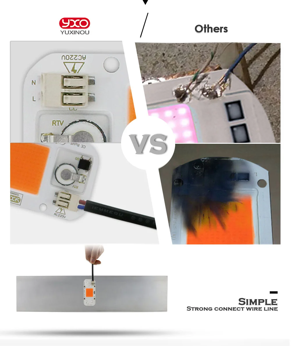 Hydroponice AC 220V 20w 30w 50w led puce de culture spectre complet 380nm-840nm pour la culture de plantes d’intérieur