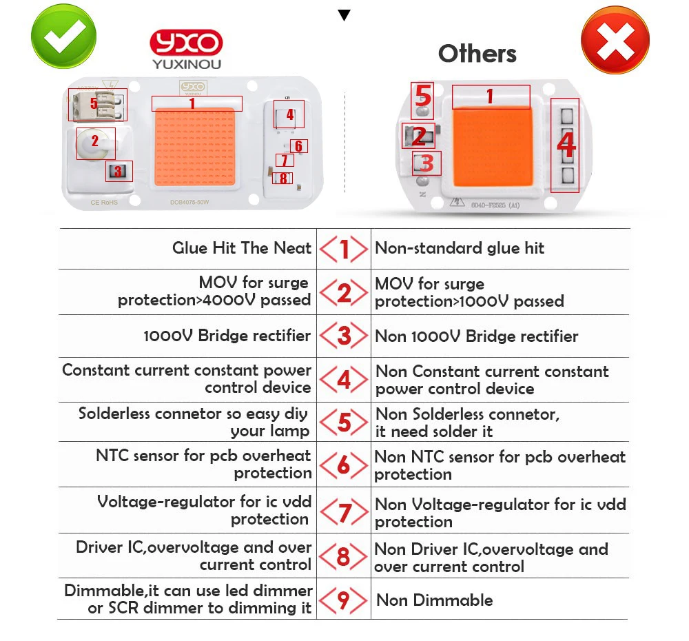 - Marque de puce LED: Epistar