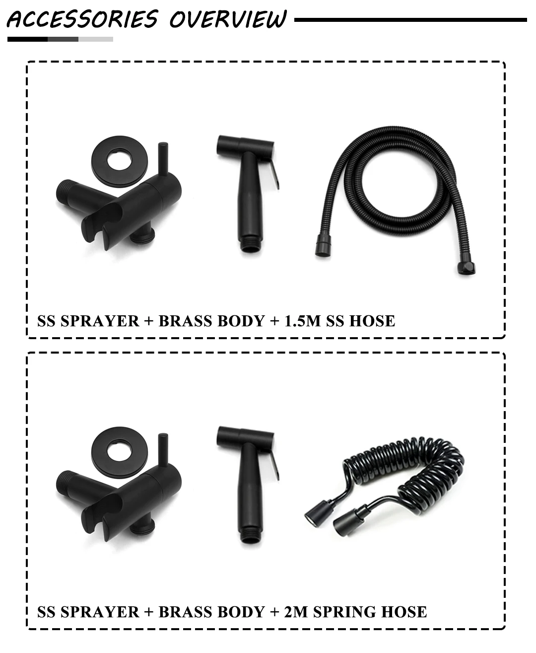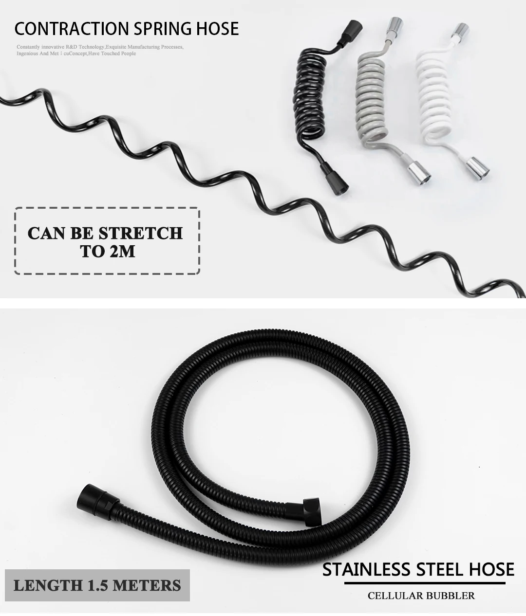• Shower Hose: 1.5M Stainless Steel Hose / 2M PVC Spring Hose