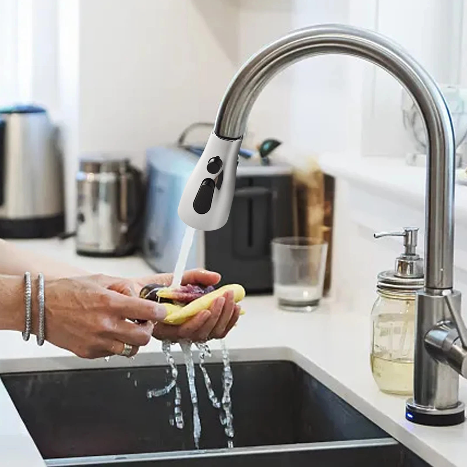 * Une buse de robinet extractible de cuisine standard.