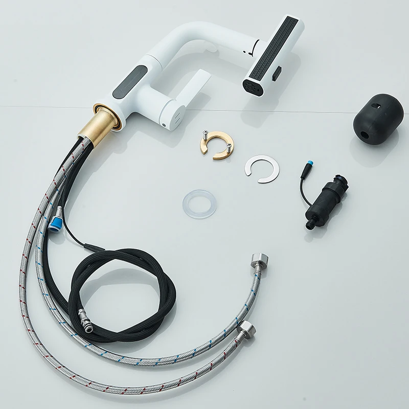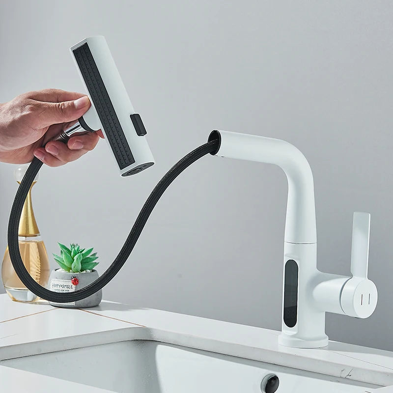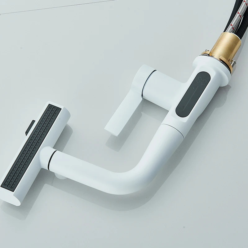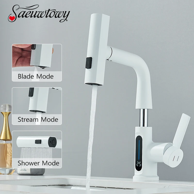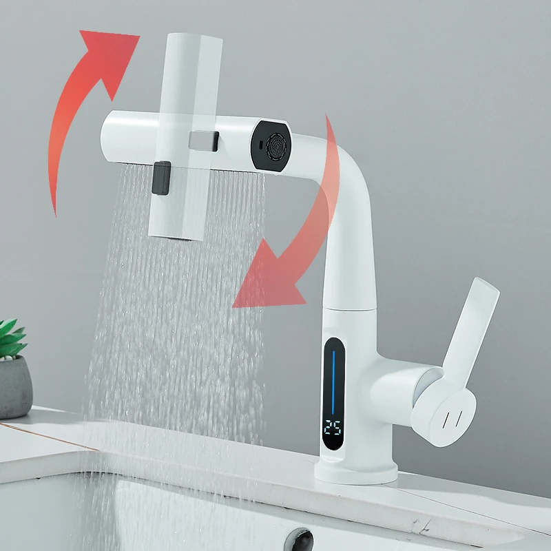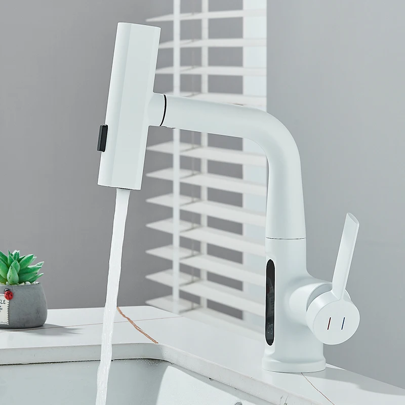Cascade température affichage numérique robinet de lavabo soulever vers le bas flux pulvérisateur eau chaude froide évier mélangeur robinet de lavage pour salle de bain