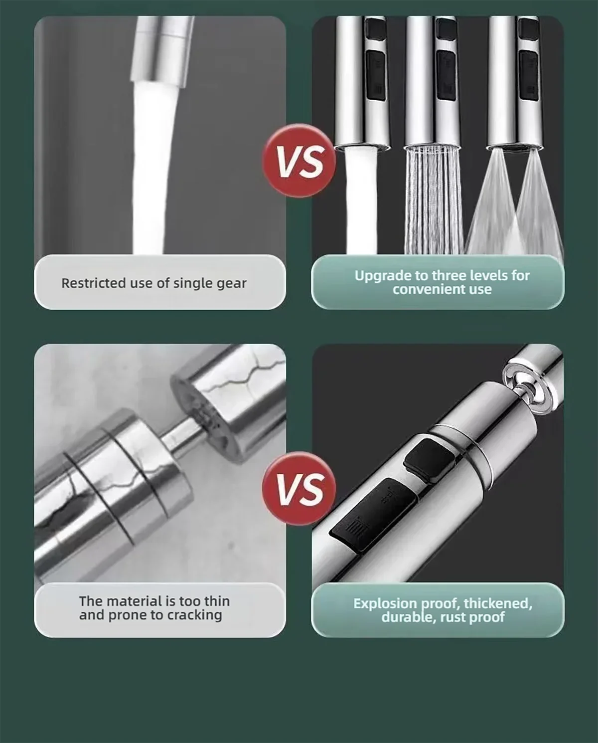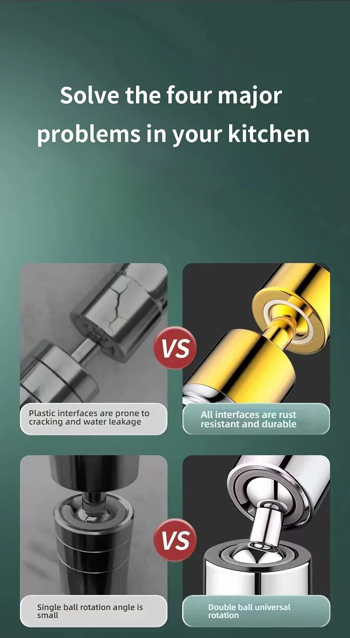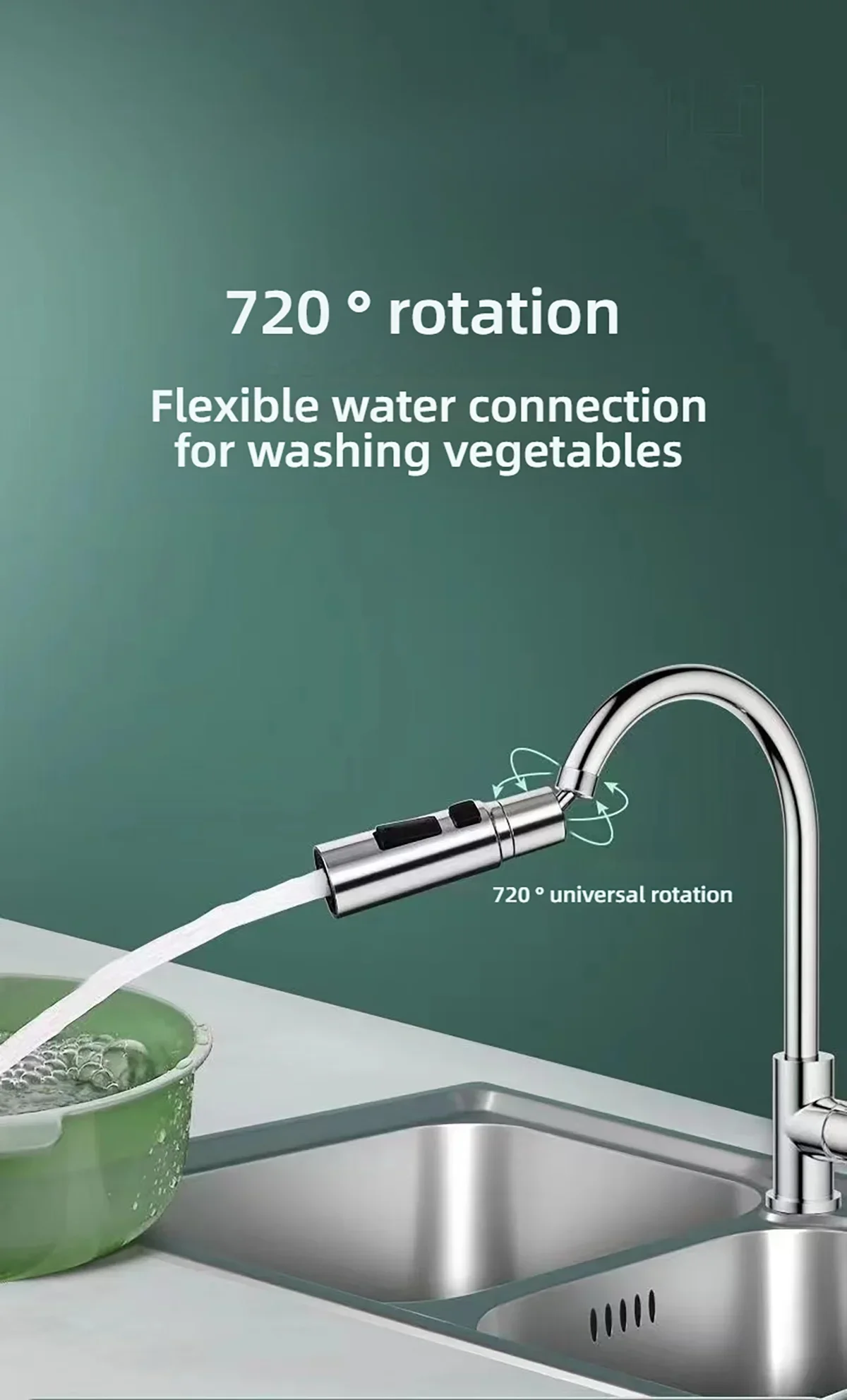 Application : Convient aux robinets de cuisine, peut être utilisé pour laver les légumes, les couverts, les casseroles et les poêles, etc. , peut également être utilisé pour nettoyer les coins d’évier et de la cuisine ; la partie du produit convient également aux robinets d’évier de salle de bains, utilisée pour le lavage quotidien des mains, le nettoyage de la lavabo, etc. .