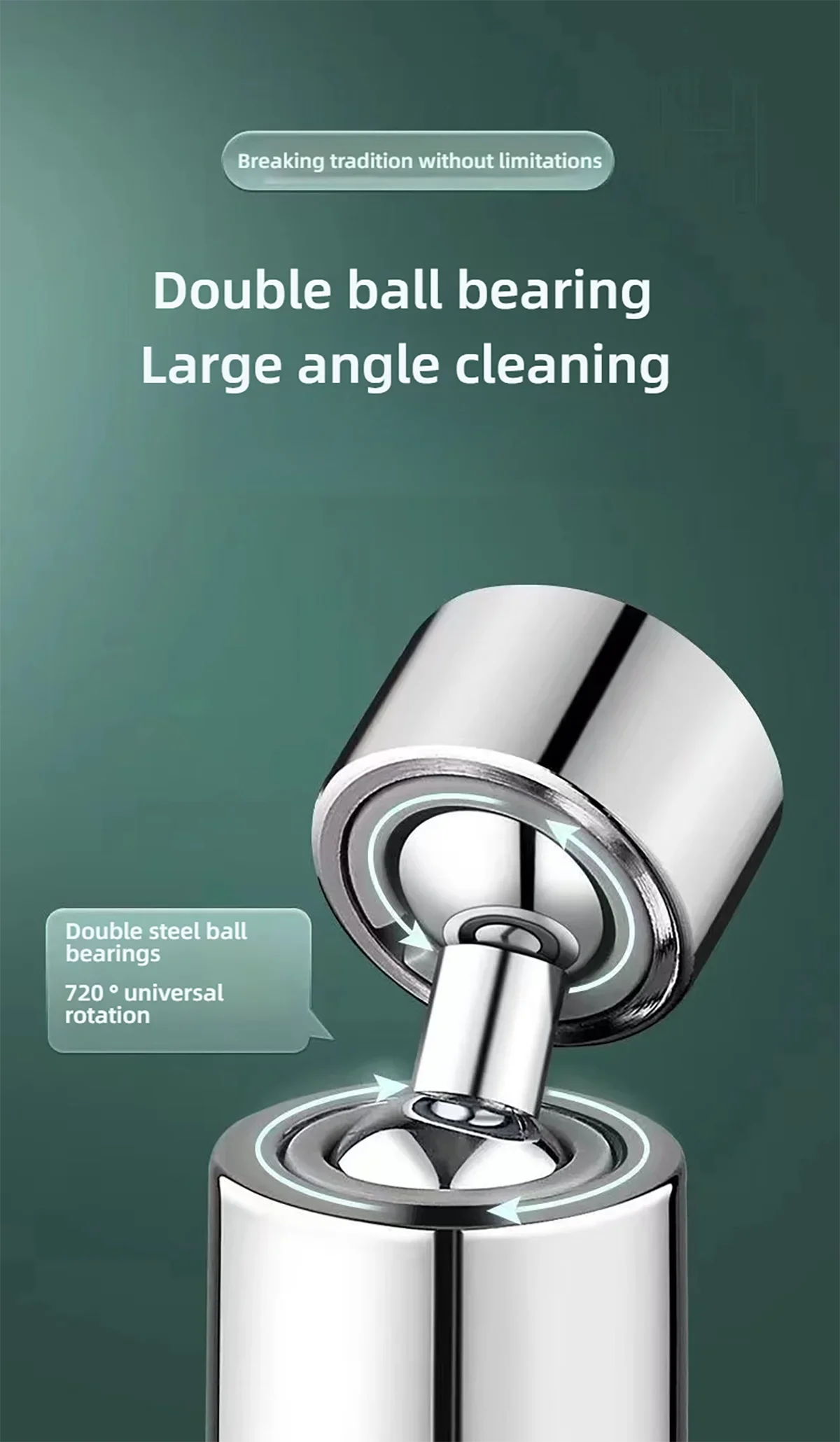 Angle de rotation : 720° rotation universelle, avec conception à double roulement à billes, peut être ajustée à un grand angle et une direction flexible, pratique pour nettoyer différentes locations.