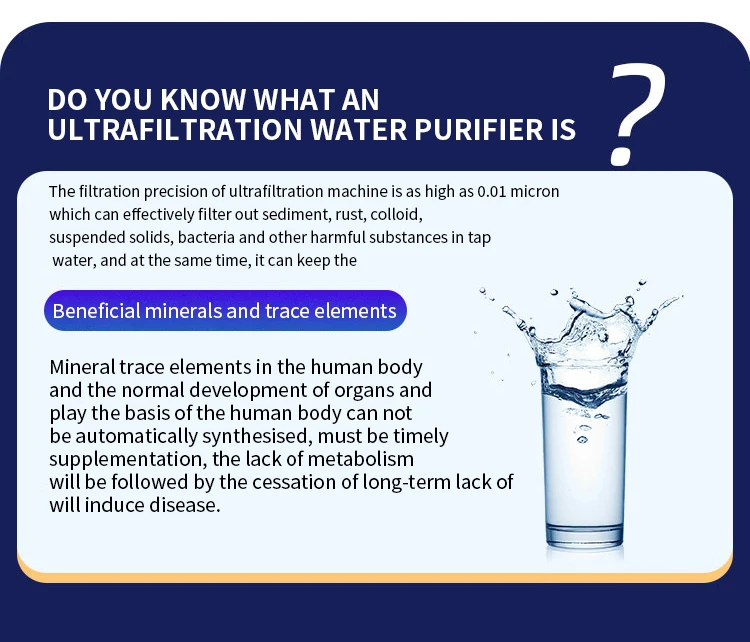 Purificateur d’eau d’ultrafiltration Commercial, système de filtres à eau en acier inoxydable 8000L, membrane 0.01μm, purificateurs d’eau de cuisine