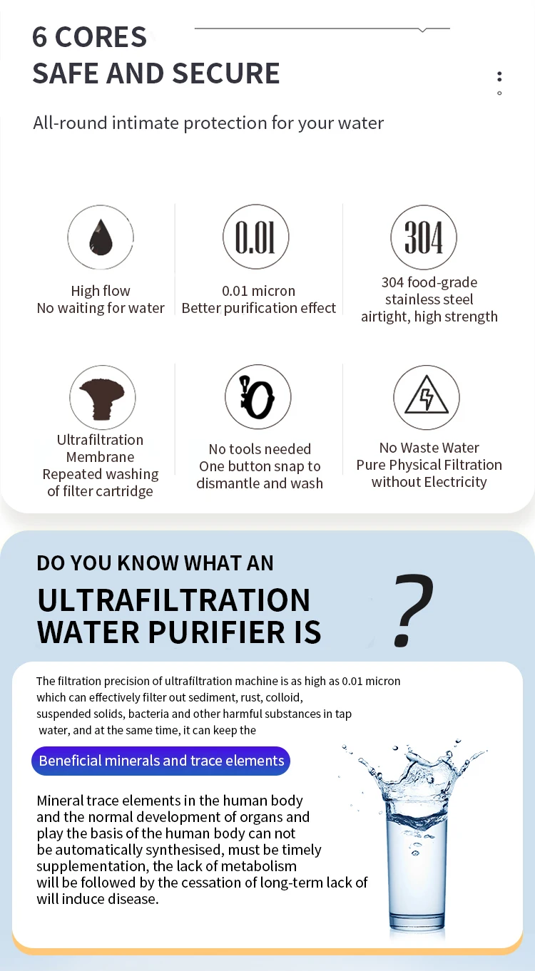 • Purification efficace de l'eau grâce à la technologie d'ultrafiltration