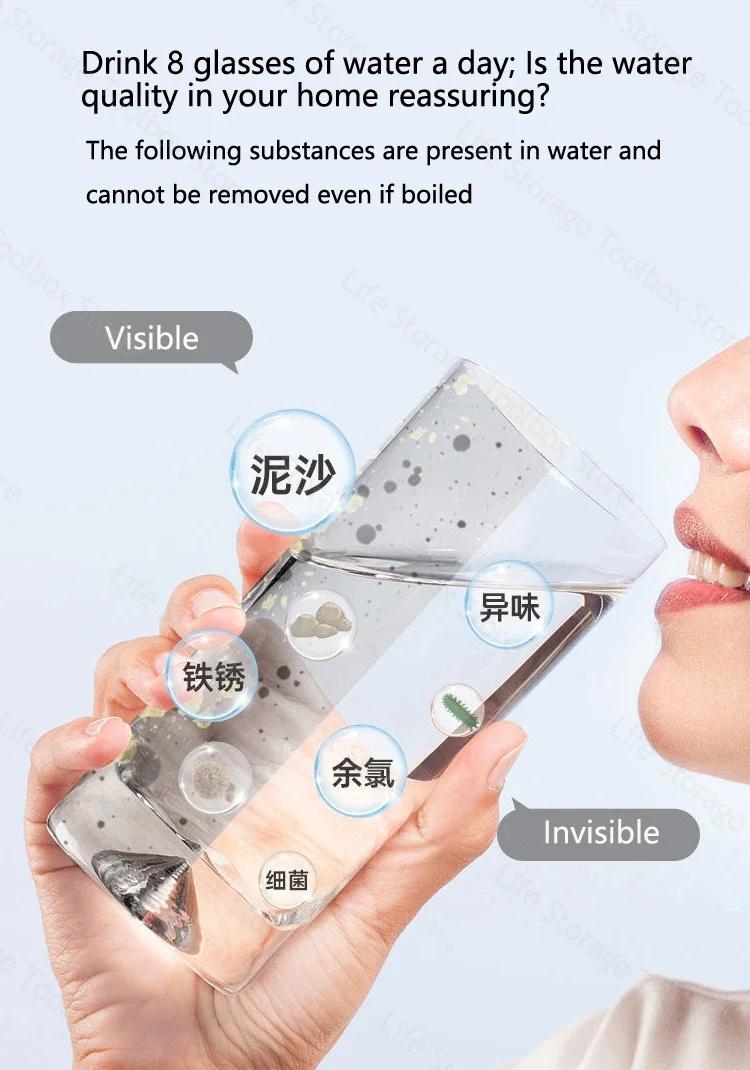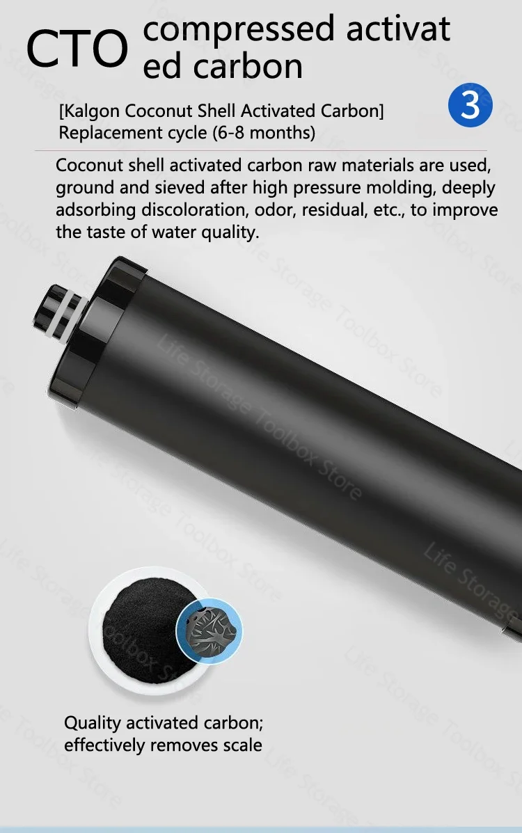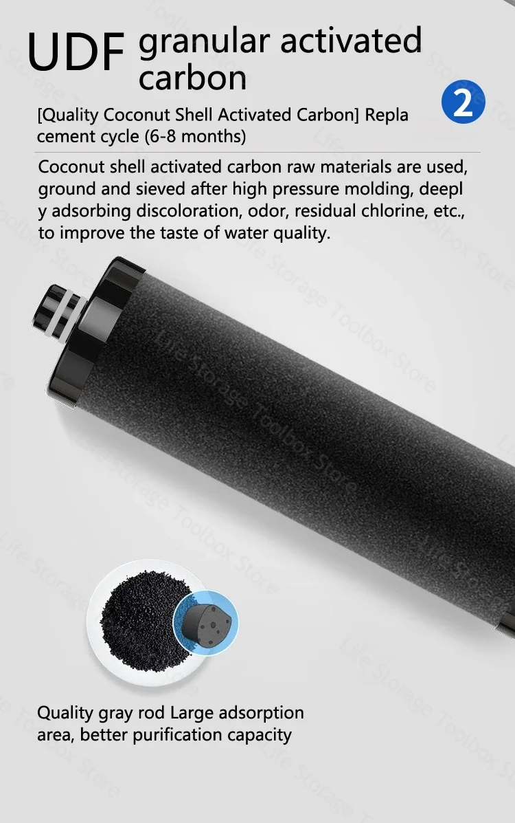 ●Filtration physique pure et adsorption du chlore résiduel de l’eau et des substances nocives, plusieurs purifications d’eau, contenant des minéraux et des oligo-éléments, avec une belle qualité de l’eau.