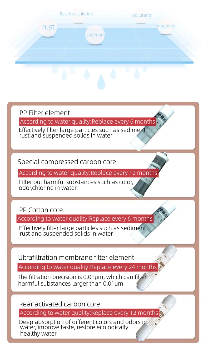 ▲Conception de 5 couches, différents couches en différents matériaux, filtration de couche par couche pour rendre l’eau plus pure.