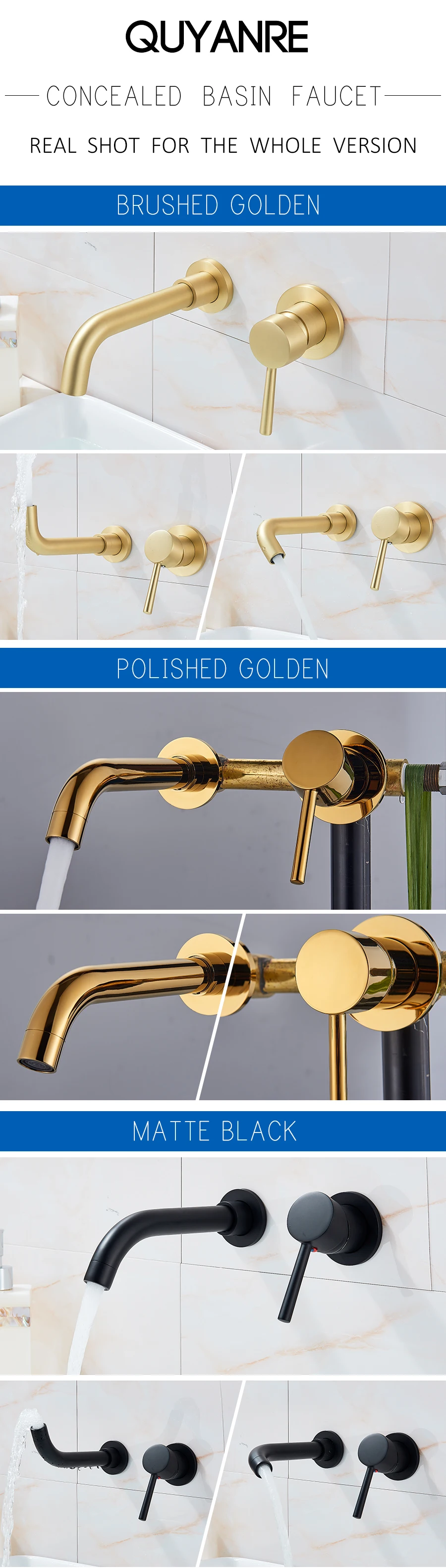 Quyanre robinet de lavabo doré brossé, robinet mural dissimulé, Rotation à 360 degrés, poignée unique, robinet mitigeur de bain d’eau chaude et froide