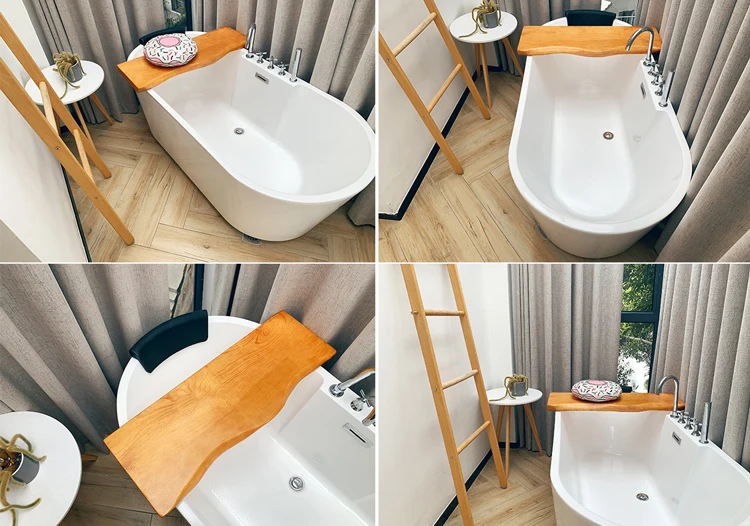 Le design élégant du rangement de baignoire en bois sert non seulement à un objectif fonctionnel mais ajoute également une touche de sophistication à la décoration de votre salle de bain.