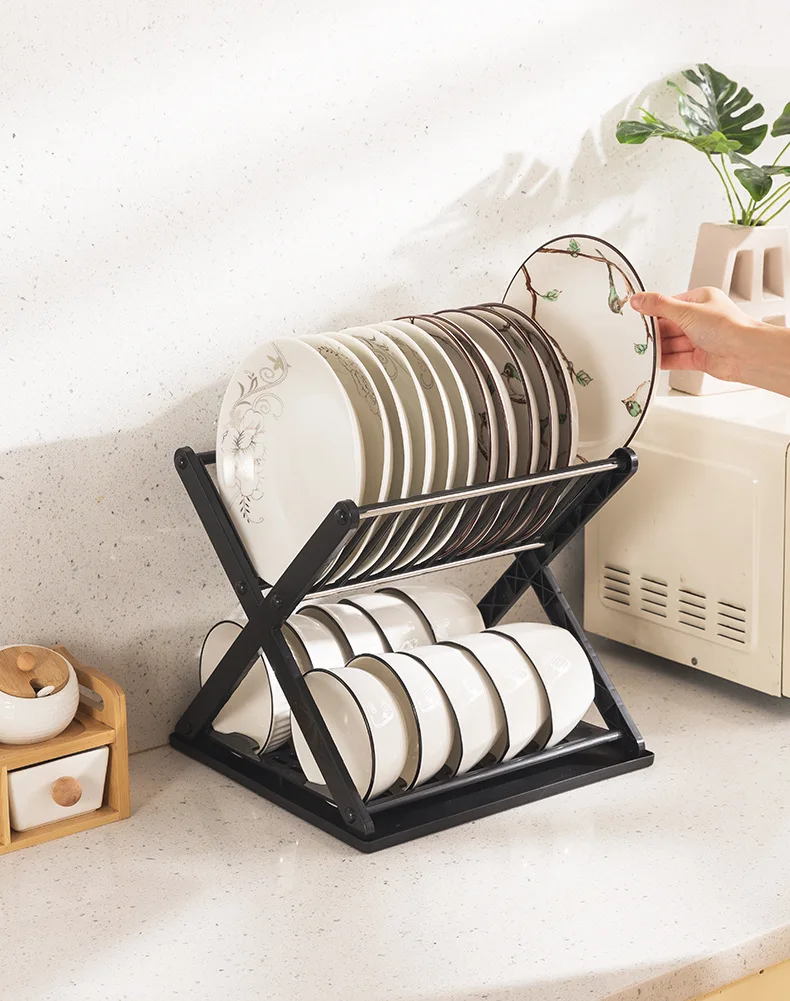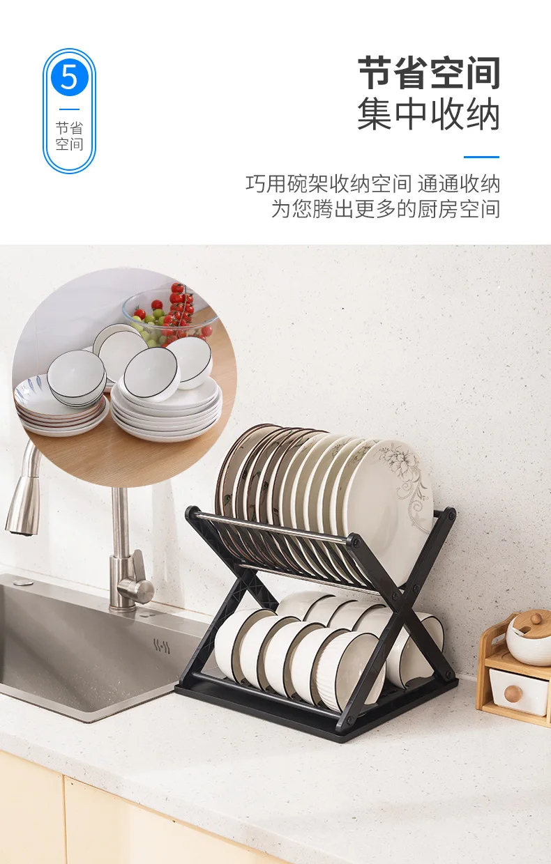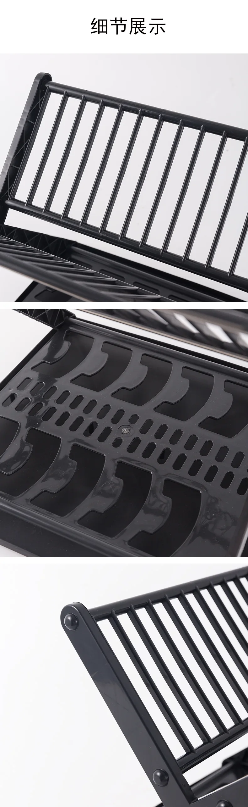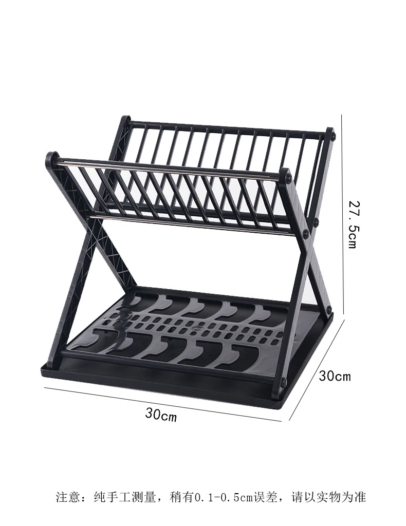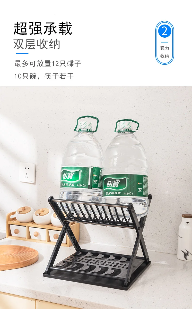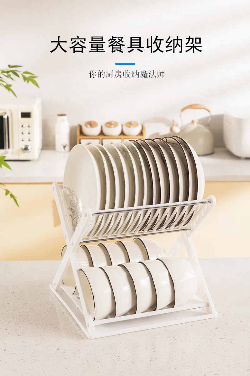 Nom du produit: petit support de rangement pour vaisselle de cuisine, support d’égouttage pour assiette à dîner de grande capacité à deux couches de bureau, support à vaisselle amovible simple