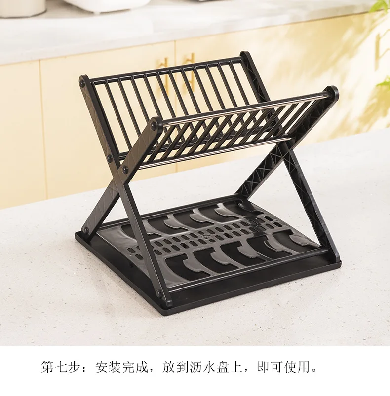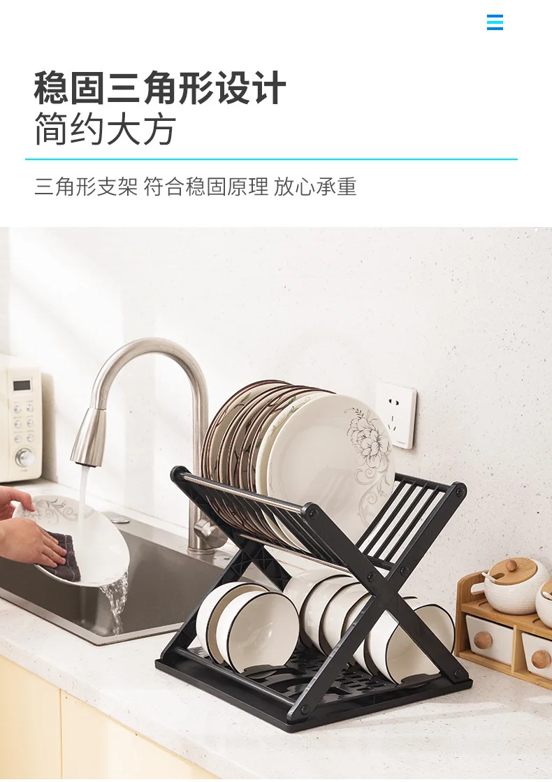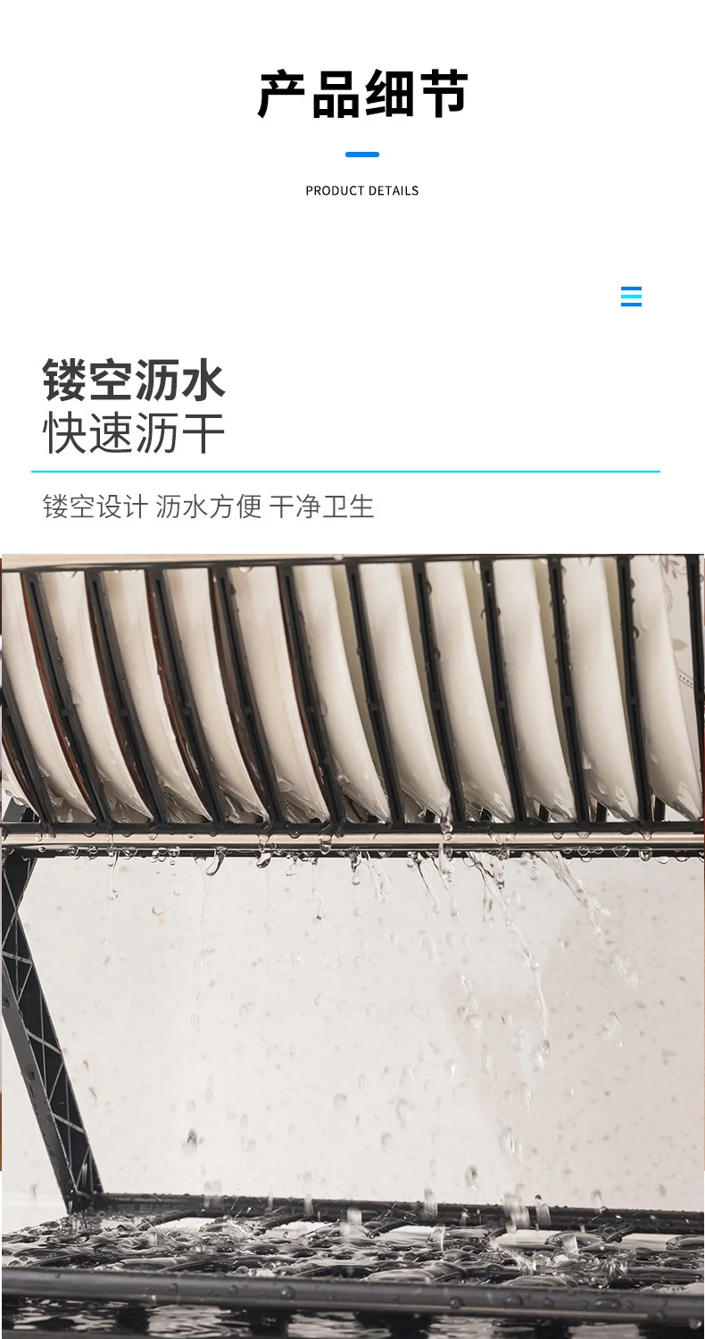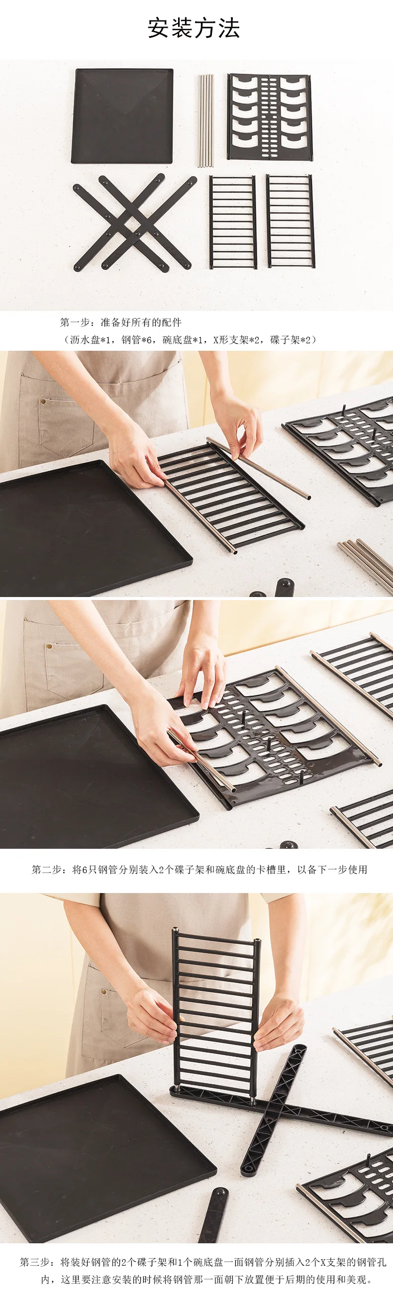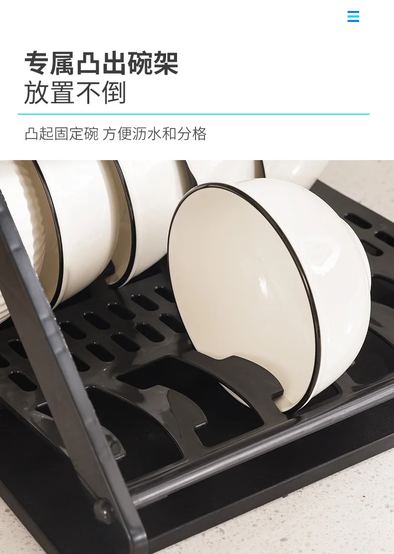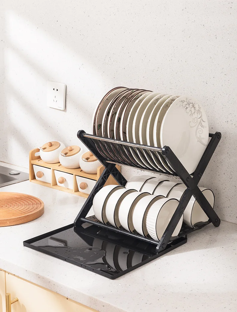 Nom du produit: petit support de rangement pour vaisselle de cuisine, support d’égouttage pour assiette à dîner de grande capacité à deux couches de bureau, support à vaisselle amovible simple