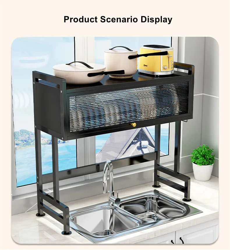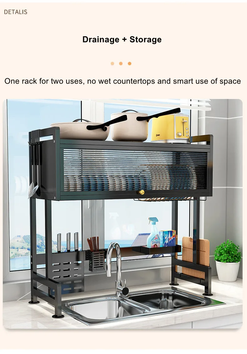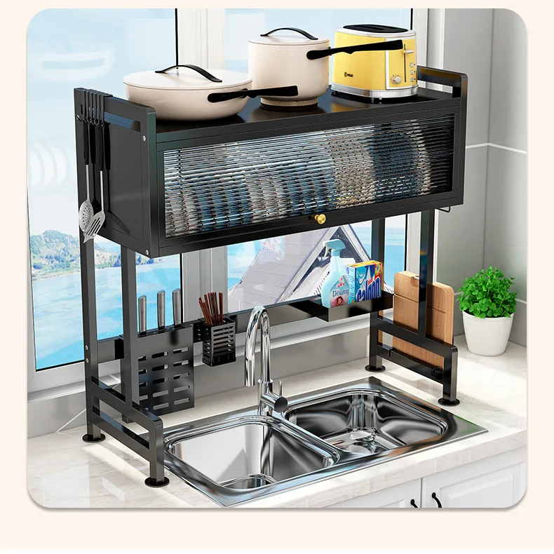 Étagère de cuisine, égouttoir pour évier, égouttoir pour vaisselle, placard avec porte, rangement pour évier, hauteur réglable