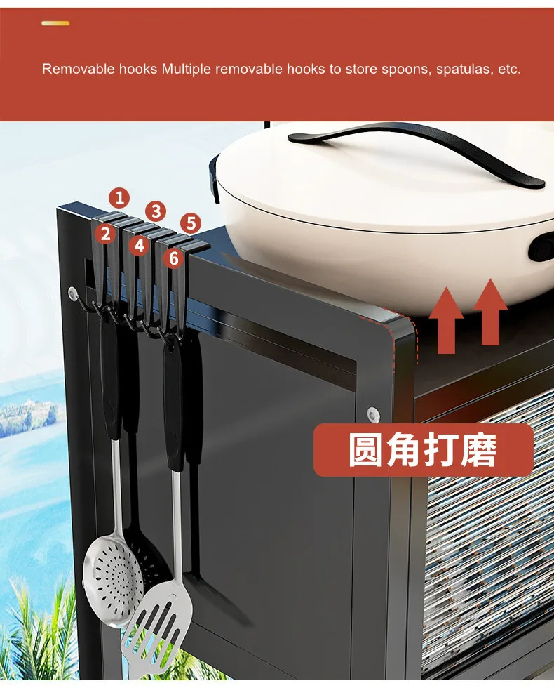 3. Crochets amovibles Plusieurs crochets amovibles pour ranger des cuillères, des spatules, etc.