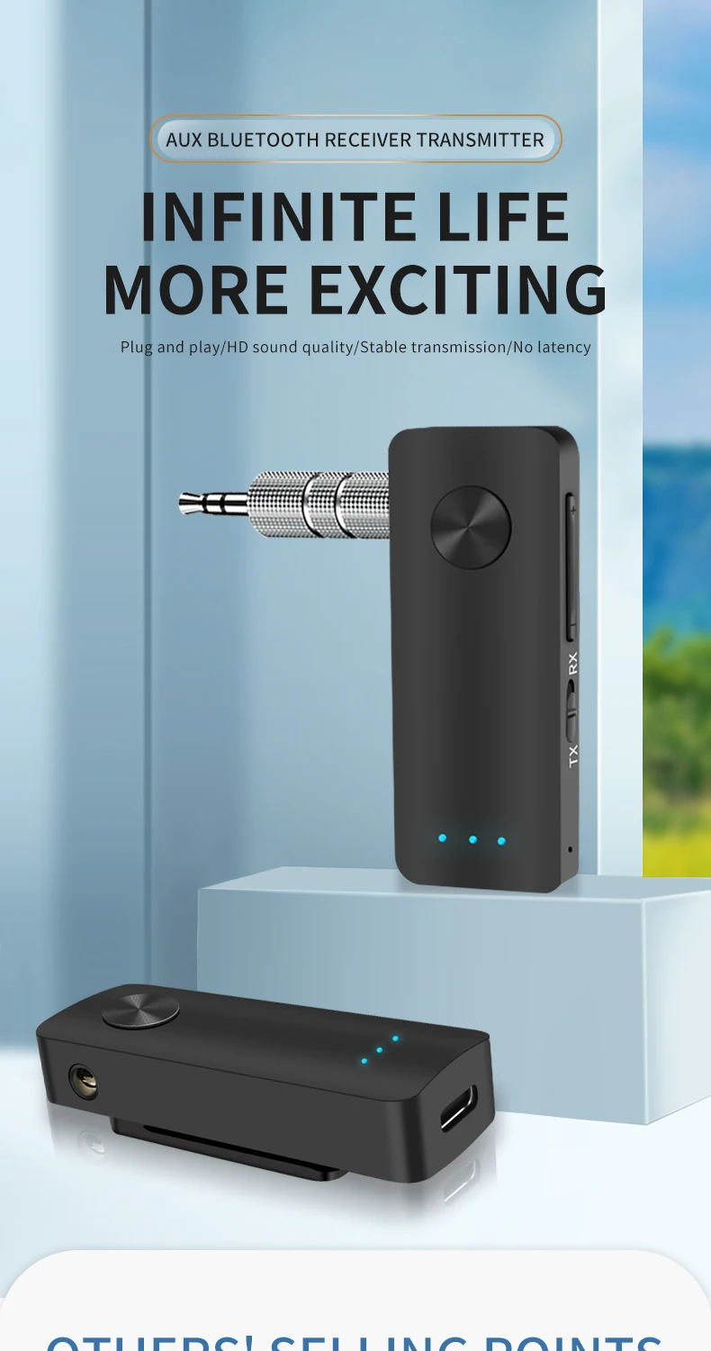 ●Cet adaptateur audio Bluetooth prend en charge l’audio aux 3,5 mm et est également compatible avec tous les smartphones, appareils audio Bluetooth (écouteurs Bluetooth, haut-parleurs Bluetooth et bien plus encore) et équipements stéréo avec port d’entrée audio.En appuyant sur le bouton situé à l’avant central, le récepteur et l’émetteur commenceront à s’associer au prochain appareil Bluetooth.