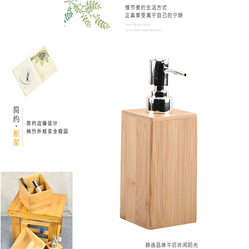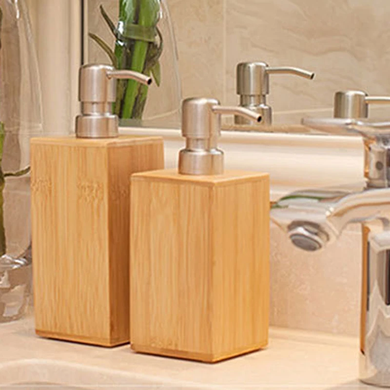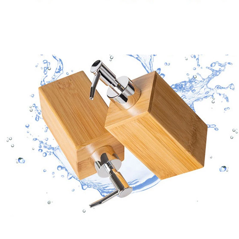 Distributeur de savon Distributeur de lotion shampooing Porte-bouteille Salle de bain Cuisine Distributeur de savon liquide pour les mains en bambou Pompe Bouteilles de gel douche