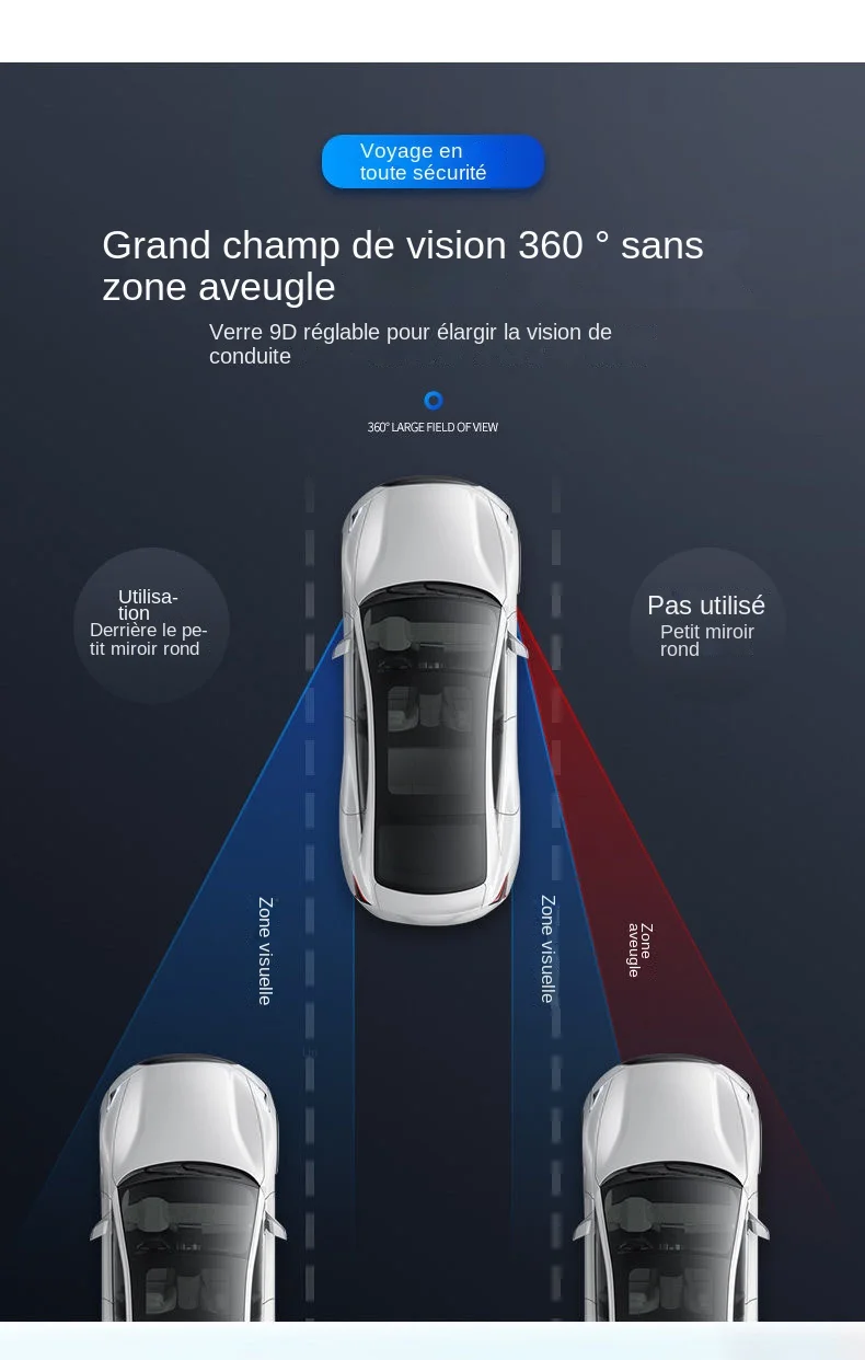 "Ce rétroviseur d'angle mort est vraiment une excellente acquisition ! Facile à installer, il offre une vue panoramique très pratique pour la sécurité de ma conduite. La qualité de la construction est remarquable et je suis impressionné par sa robustesse malgré sa petite taille. Le seul petit bémol est qu'il nécessite quelques ajustements pour le positionner correctement, mais une fois en place, c'est parfait. Je le recommande vivement à tous les automobilistes soucieux de leur sécurité."