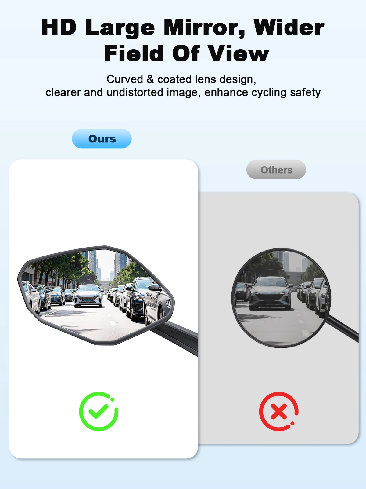 1.Conception incurvée avec un grand miroir haute définition pour un angle de vision plus large et une sécurité améliorée ;