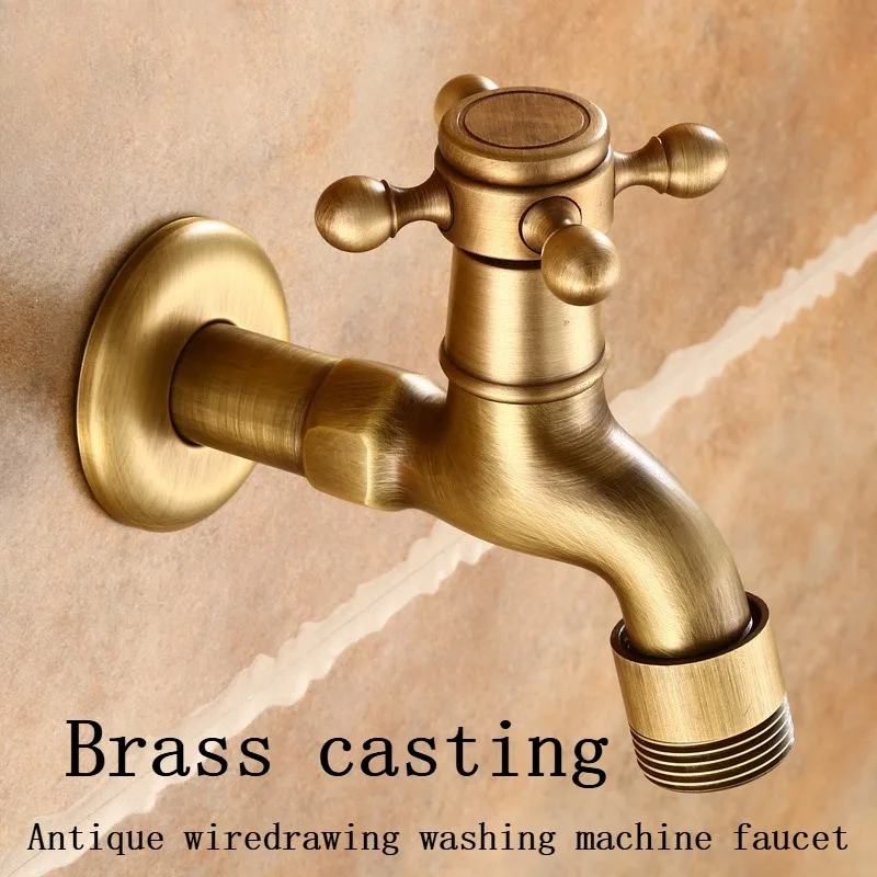 Robinet à poignée unique en laiton massif Vintage pour Machine à laver, robinet d’eau muralRobinet à poignée unique en laiton massif Vintage pour Machine à laver, robinet d’eau mural
