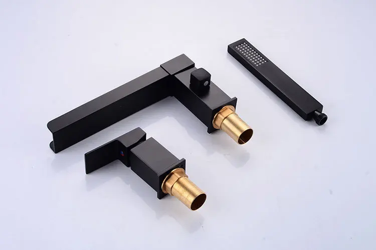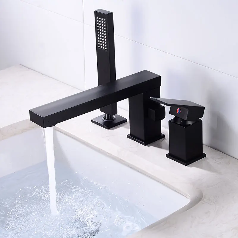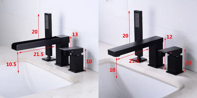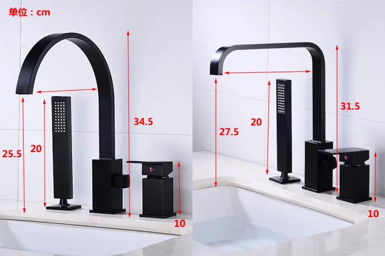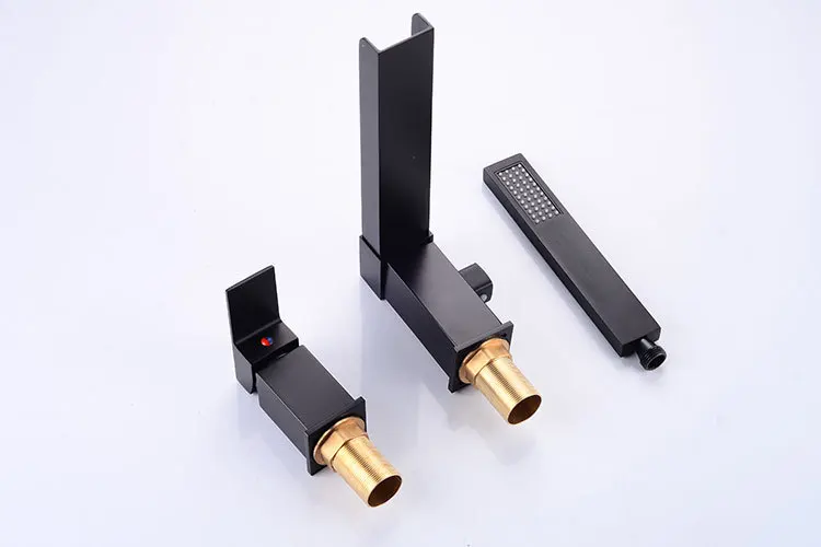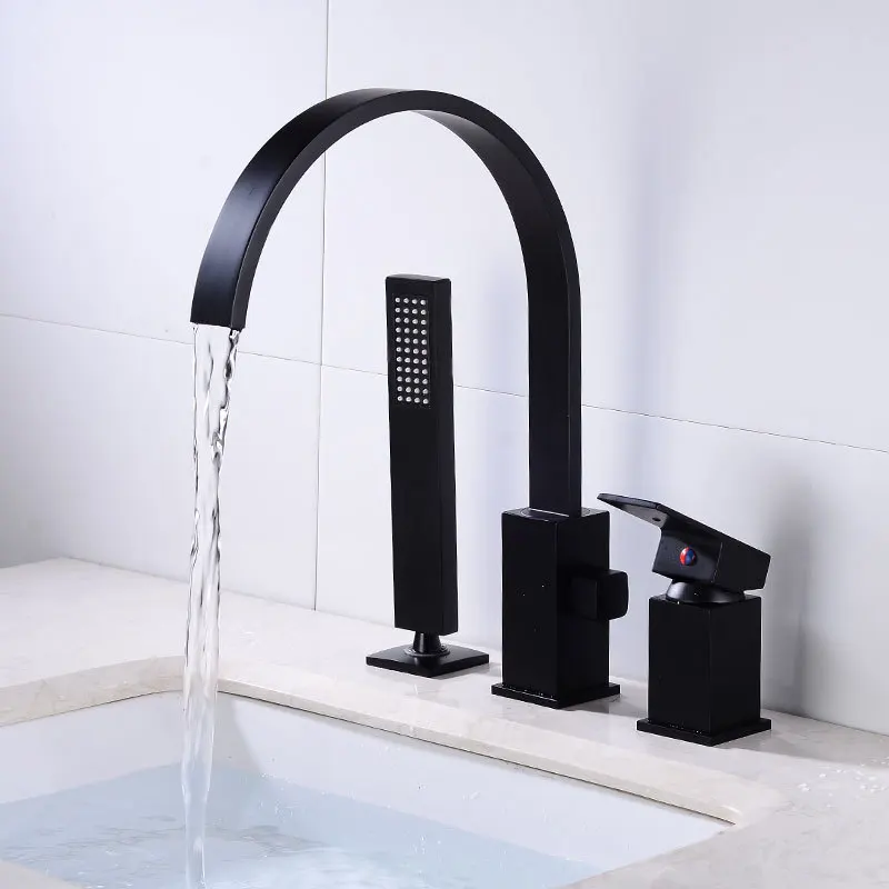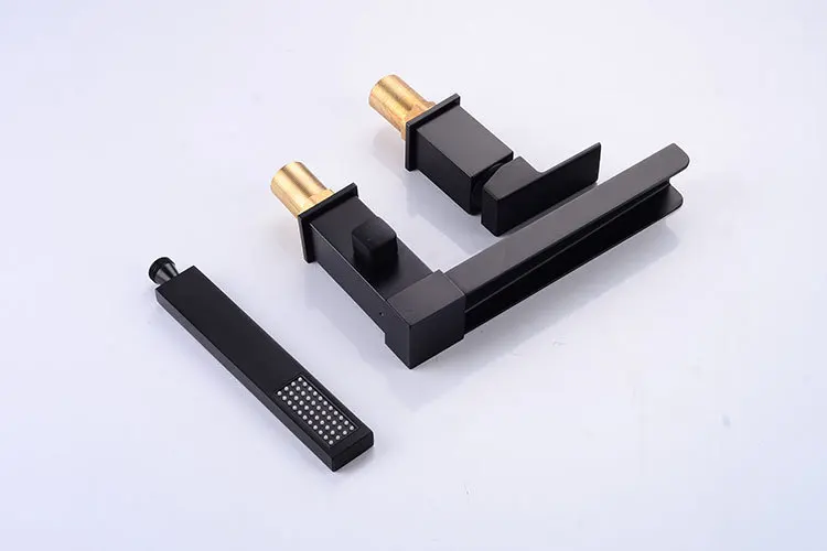 Robinet de lavabo de salle de bain avec pommeau de douche noir robinet cascade répandu mitigeur de lavabo de luxe robinet d’évier de salle de douche chaude et froide