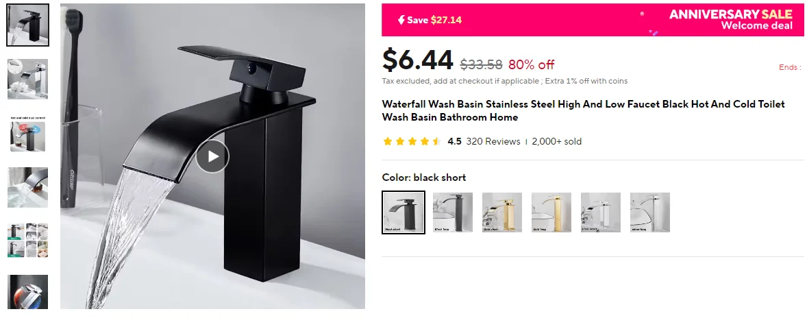 Lavabo cascade en acier inoxydable, robinet haut et bas noir, lavabo de toilette chaud et froid, salle de bains maison (aliexpress.com)