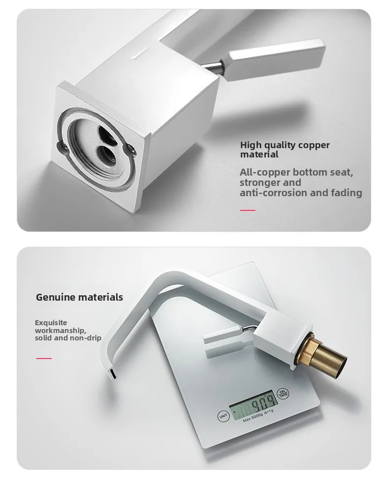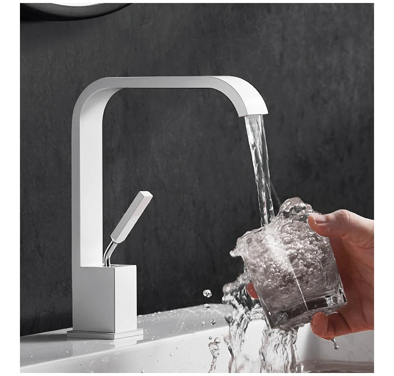 Hotaan-Robinet d'Eau Froide et Chaude en Laiton, Blanc Massif, Poignée Unique, pour Évier, Centre Commercial |