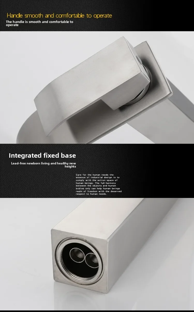 Robinet cascade en acier inoxydable 304, brossé chaud et froid, lavabo de comptoir de salle de bains, robinet mixte, robinets de salle de bainsRobinet cascade en acier inoxydable 304, brossé chaud et froid, lavabo de comptoir de salle de bains, robinet mixte, robinets de salle de bains