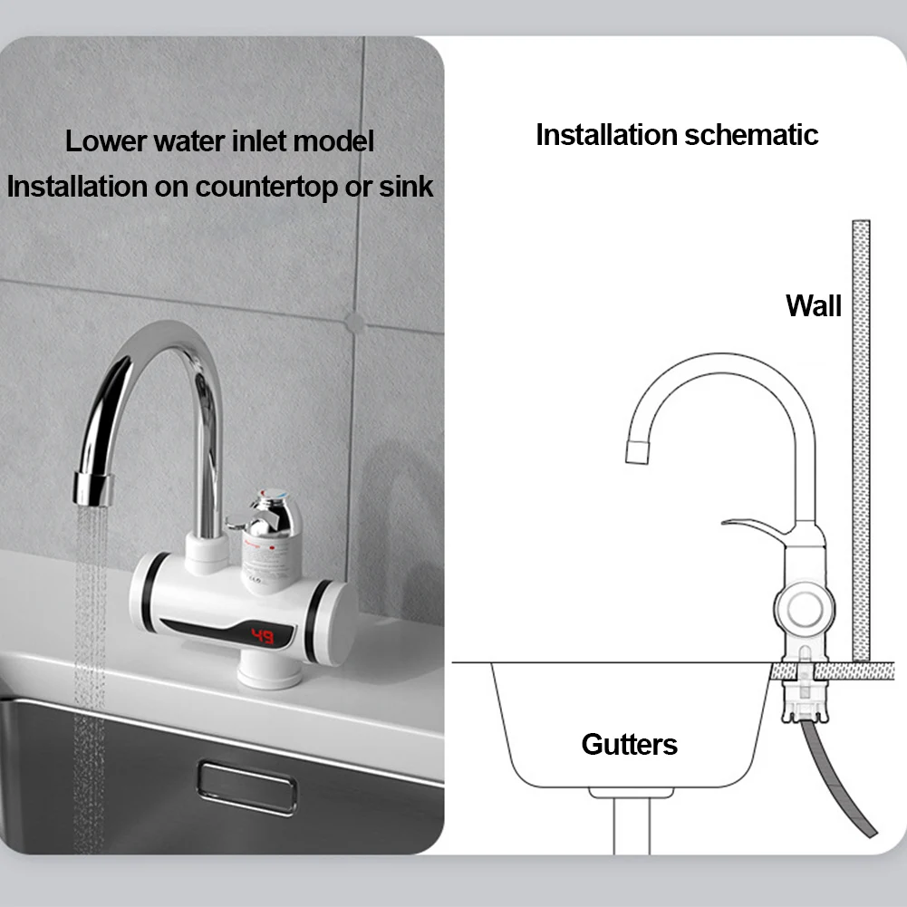 Caractéristique : 1.Conception économe en énergie :Réduisez la consommation d’énergie de 30 % avec une prise économe en eau, économisant à la fois de l’électricité et de l’eau.Le robinet du chauffe-eau est conçu avec une sortie économe en eau, réduisant considérablement la consommation d’eau tout en conservant des performances optimales.Il consomme 30 % d’énergie en moins par rapport aux modèles traditionnels, ce qui entraîne des économies de coûts et des avantages environnementaux. 2.Polyvalent et réglable :Equipé d’un tuyau flexible qui tourne librement, augmentant ainsi la facilité d’utilisation et la compatibilité dans les environnements de cuisine et de salle de bain.Le tuyau pivotant du robinet de cuisine à chauffage instantané permet une manipulation facile, offrant une plus grande flexibilité et commodité lors de l’utilisation.Convient à divers environnements, tels que les cuisines et les salles de bains, avec des réglages de température réglables pour répondre aux différentes préférences des utilisateurs. 3.Chauffage instantané intelligent :Profitez de l’eau chaude en 3 secondes grâce au robinet intelligent à chauffage rapide.Le robinet utilise une technologie de pointe pour chauffer l’eau instantanément, réduisant ainsi le temps d’attente et fournissant de l’eau chaude immédiate en cas de besoin.L’affichage numérique intelligent permet un contrôle précis de la température, garantissant une expérience aquatique confortable et personnalisée. 4.Considérations sur la pression de l’eau :Veuillez noter que le mitigeur chaud-froid nécessite une certaine pression d’eau pour fonctionner correctement et qu’il n’est pas recommandé aux utilisateurs ayant une faible pression d’eau ou des sources d’eau non conventionnelles.La fonctionnalité du produit dépend d’une pression d’eau adéquate, de sorte que les clients qui dépendent de sources d’eau non municipales ou dont la pression d’eau est inférieure à 6 mètres peuvent trouver ce produit inadapté.Pour des performances et une longévité optimales, il est important de garantir que la pression de l’eau répond aux exigences du produit. 5.Directives d’installation :Avant l’installation, veuillez suivre les instructions spécifiques pour garantir une configuration correcte et éviter les problèmes potentiels.Confirmez la méthode d’entrée d’eau avant d’acheter pour garantir la compatibilité avec votre système de plomberie actuel, évitant ainsi les complications d’installation.L’installation doit être effectuée uniquement en position vers le haut, en évitant strictement les installations latérales, plates ou inversées pour plus de sécurité et de performances optimales. Remarque :