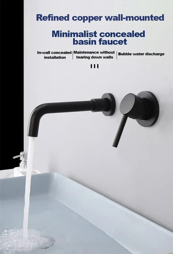 Soyez le premier à laisser votre avis sur “Robinet de ark à double commande froid et chaud à poignée unique, robinet de salle de bain moderne mural en laiton noir PLANwith design dissimulé 2 trous”