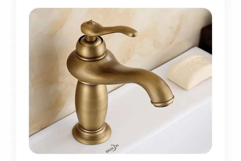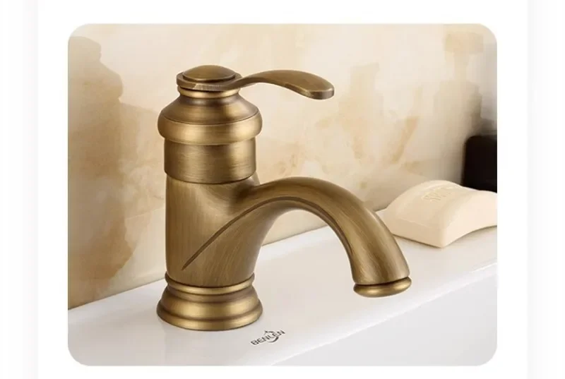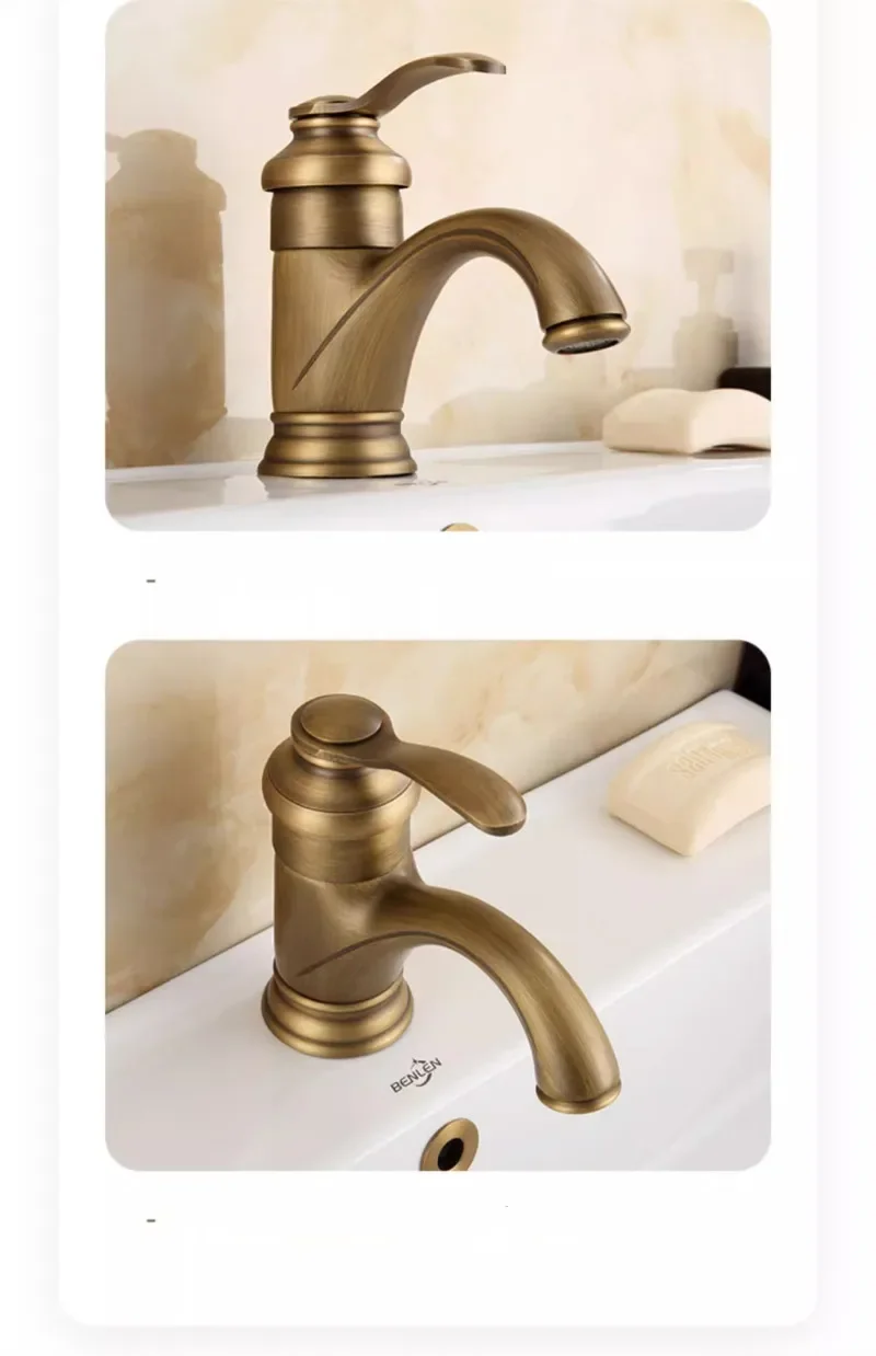 Robinet de lavabo de salle de bain antique robinet de salle de bain chaud et froid grue mitigeur d’évier en laiton