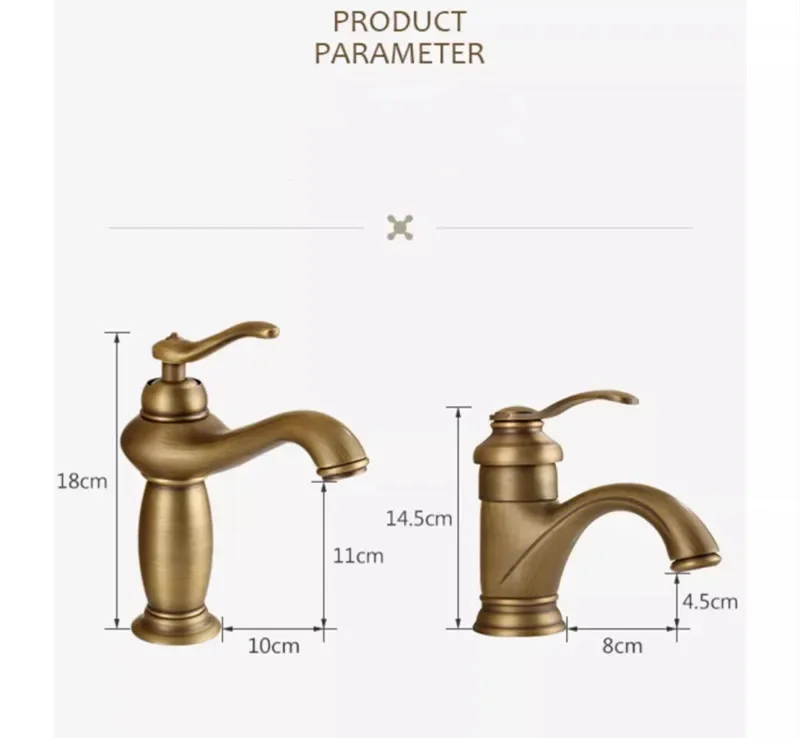 Robinet de lavabo de salle de bain antique robinet de salle de bain chaud et froid grue mitigeur d’évier en laiton